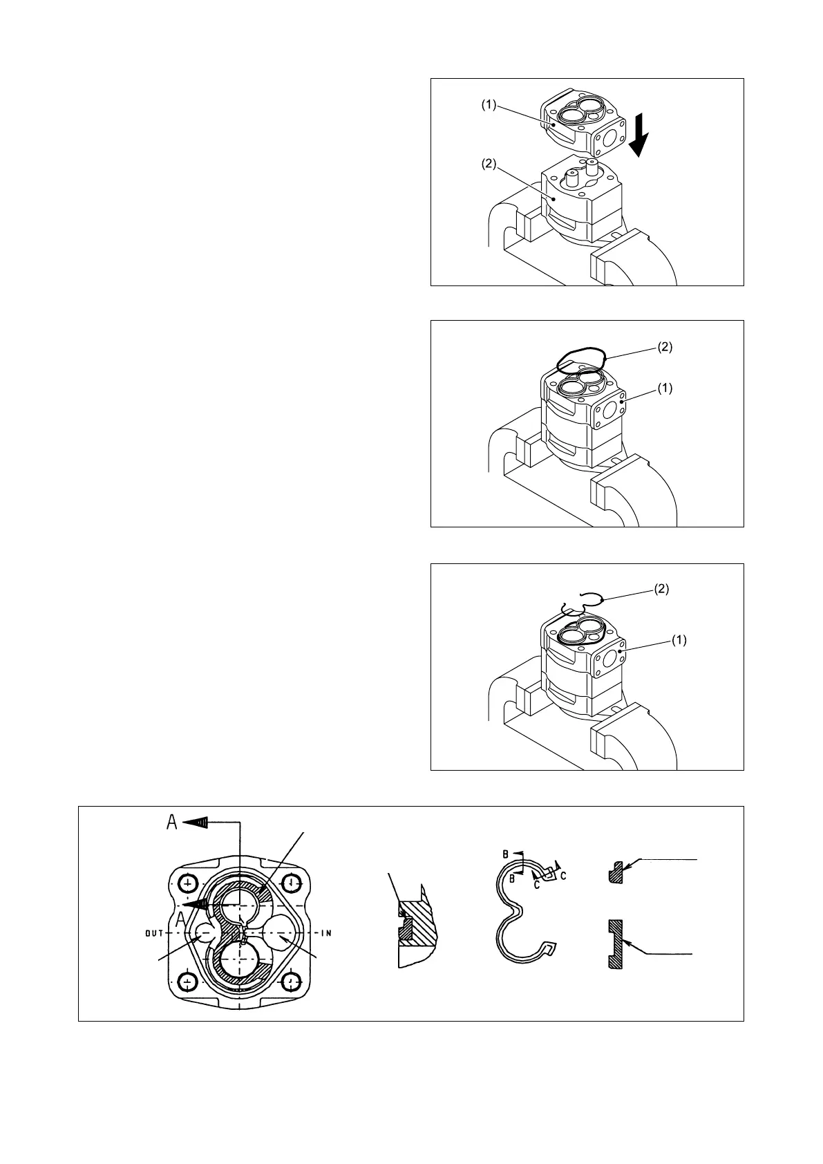 ⑪ Install the adapter (1) in the pump body half 1