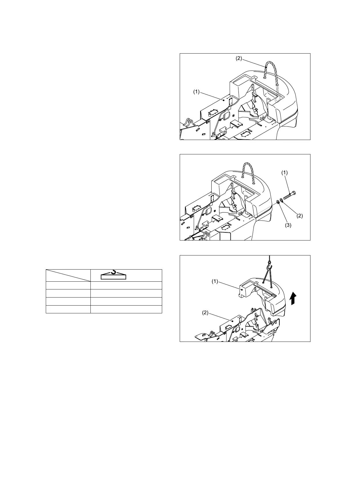 ③ Hoist the counterweight (1) off the frame (2).