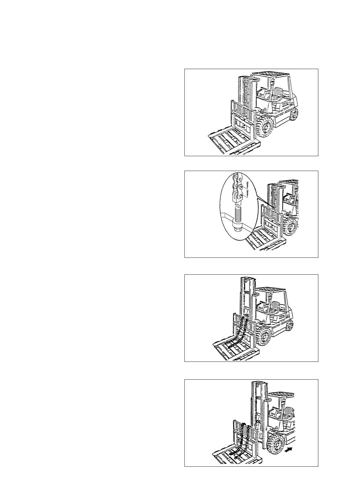 ③ Put the chains on the pallet and raise the inner