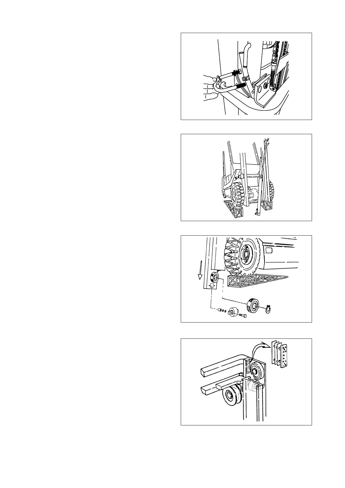 ⑨ Holding the lift cylinder, remove the U bolt.