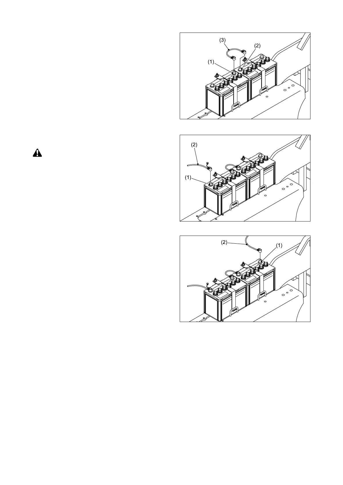 ④ Connect the battery cable (3) to the battery 1’s