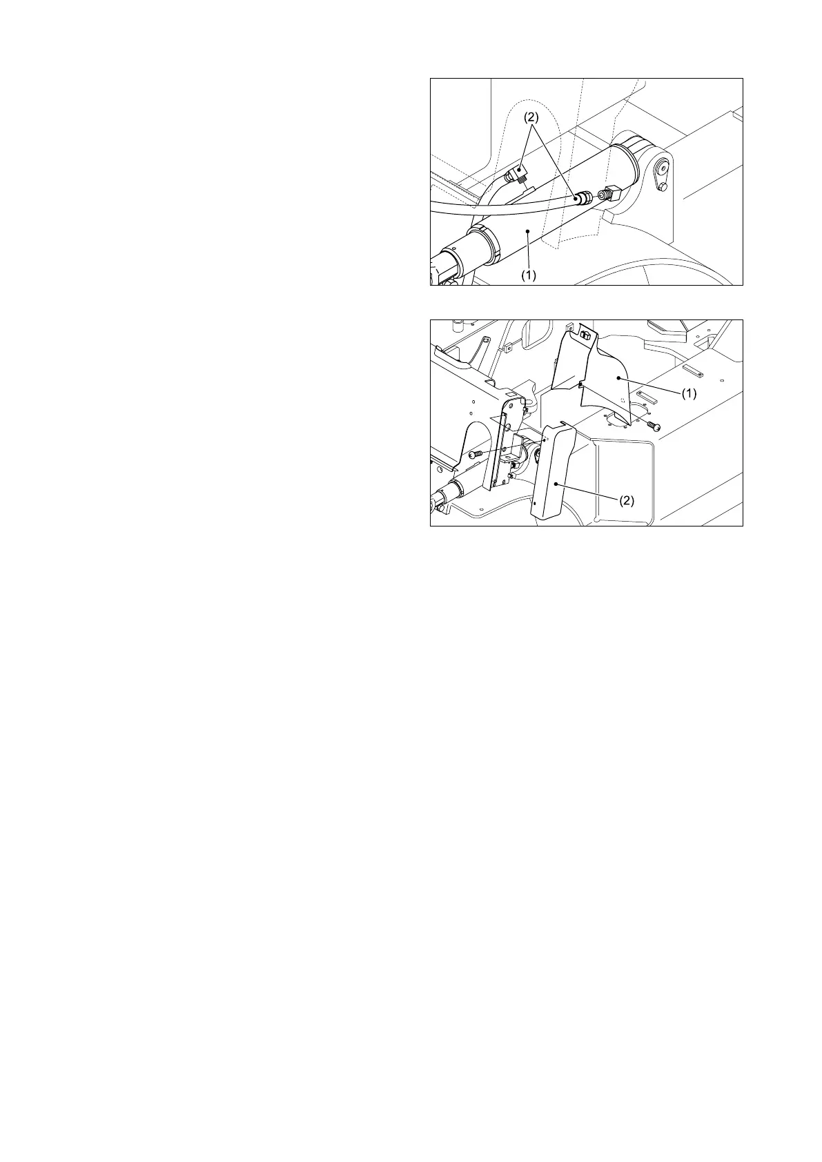 Install the tilt cylinder covers (1) and plastic