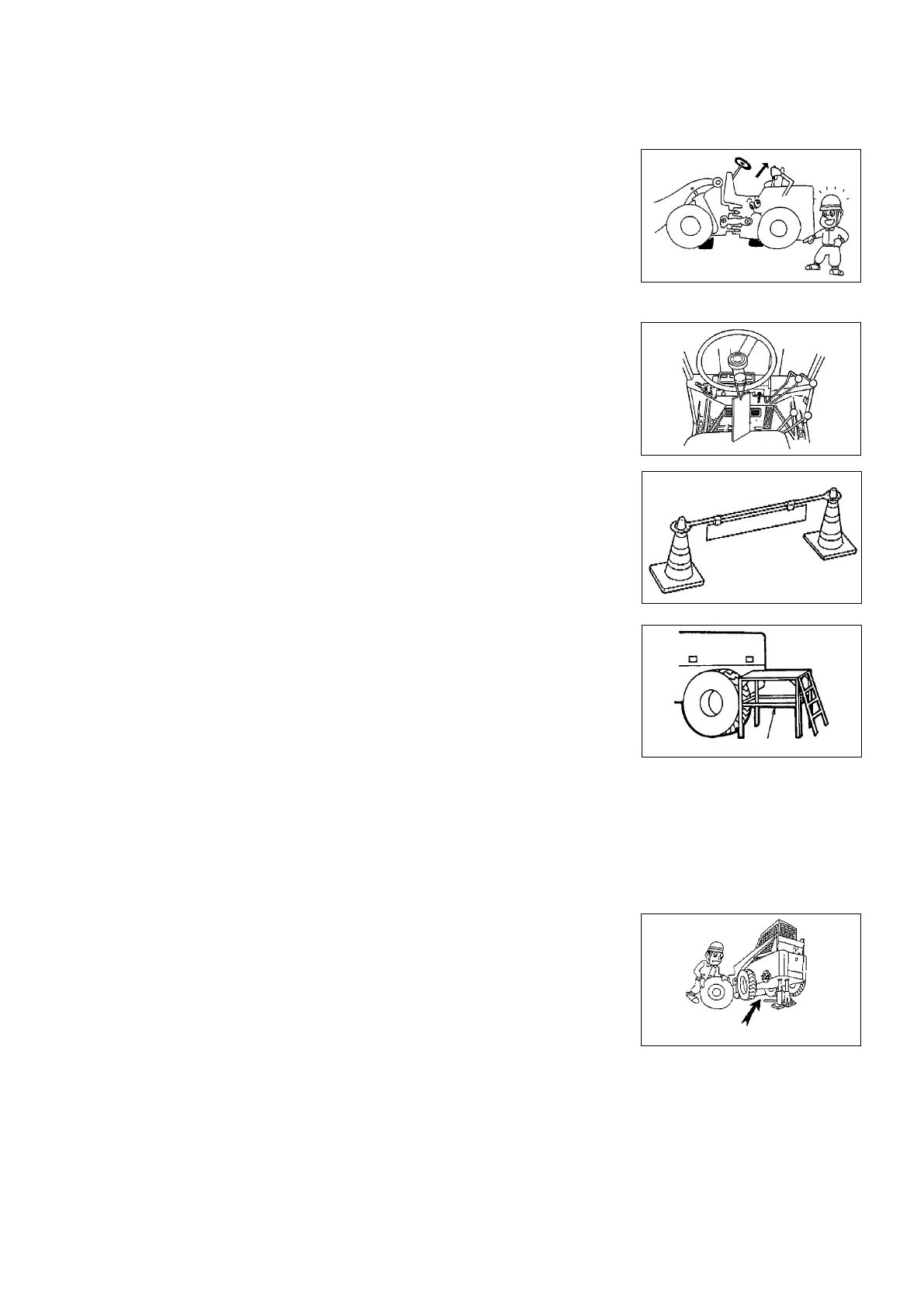 the forks or bucket raised, use supports to prevent the forks or bucket