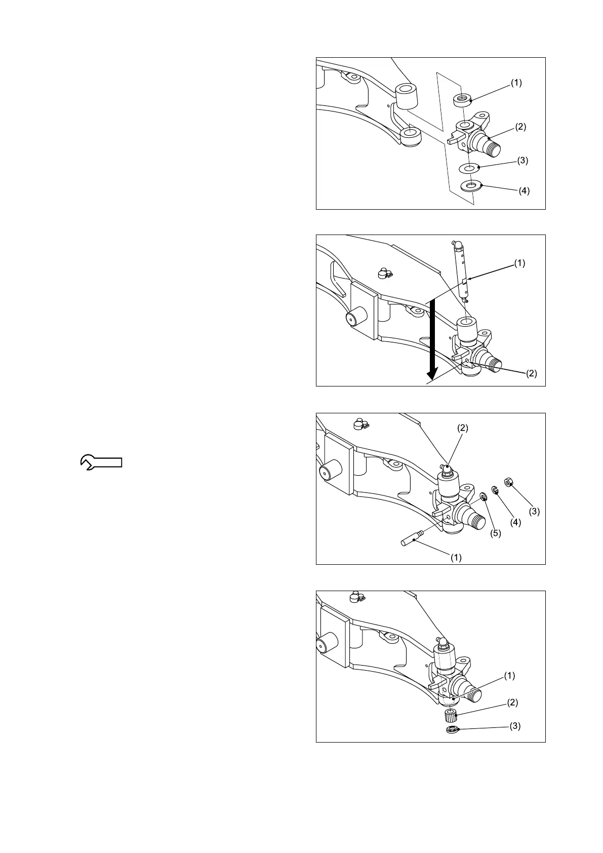 ⑦ Lock the king pin (2) with the lock pin (1),