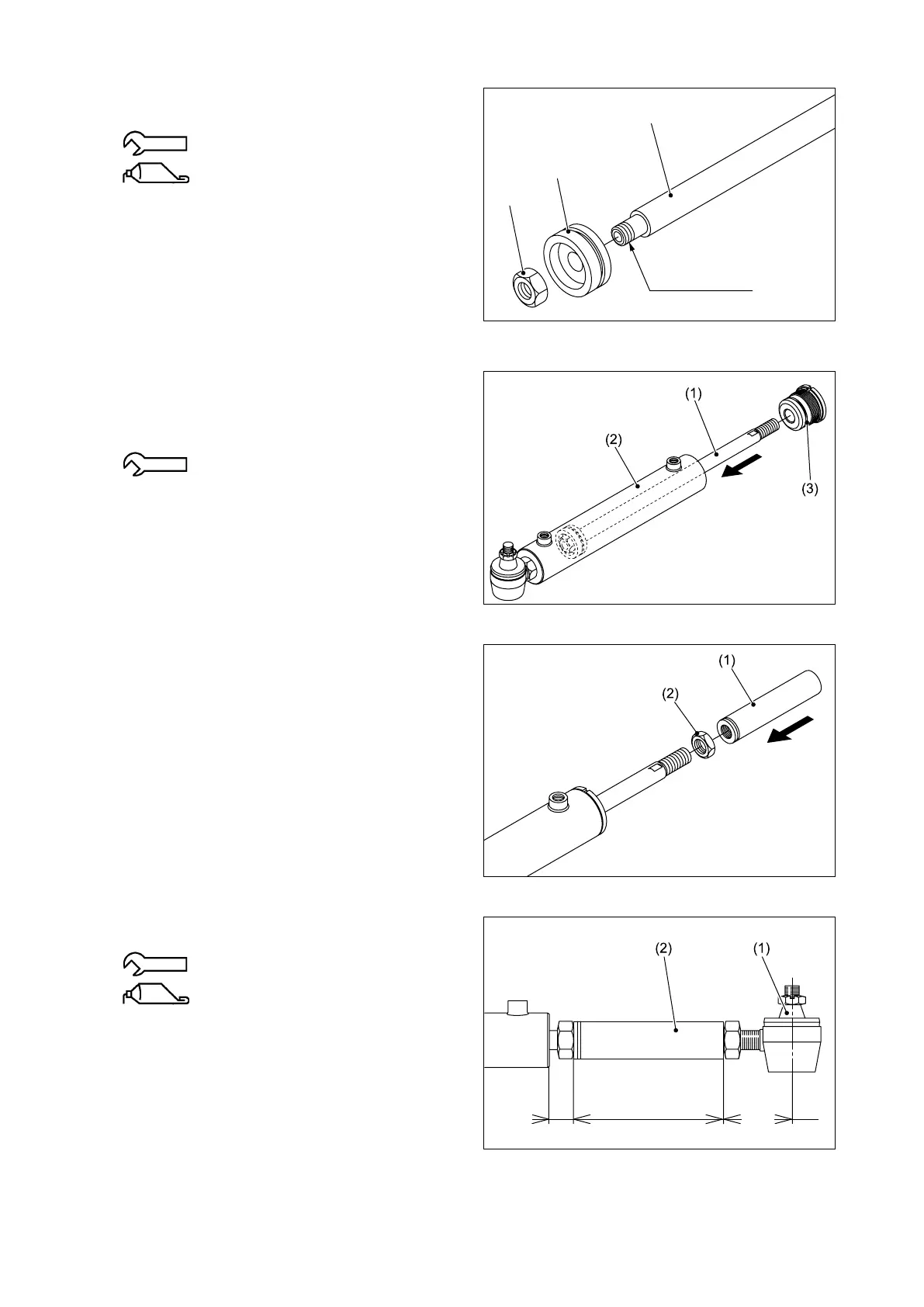 ⑥ Insert the rod assembly (1) into the cylinder (2)
