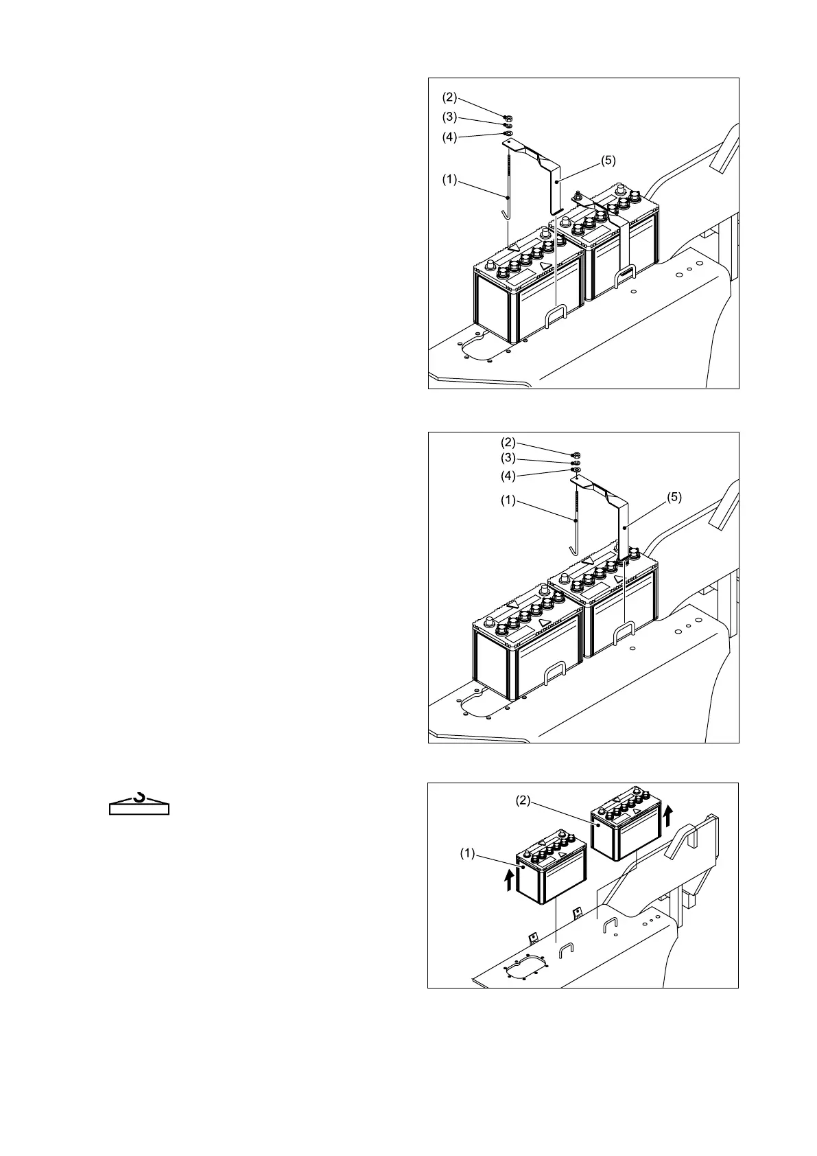 ⑥ Remove the batteries 1 (1) and 2 (2).