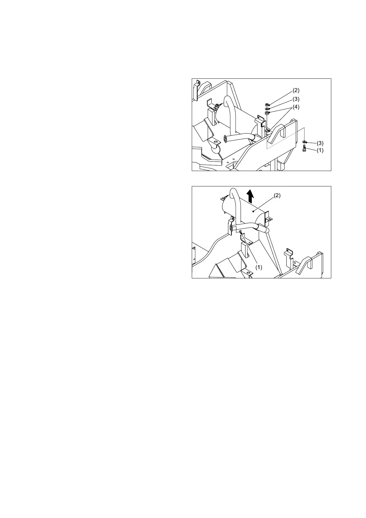 ② Remove the bolt (1) and nut (2) securing