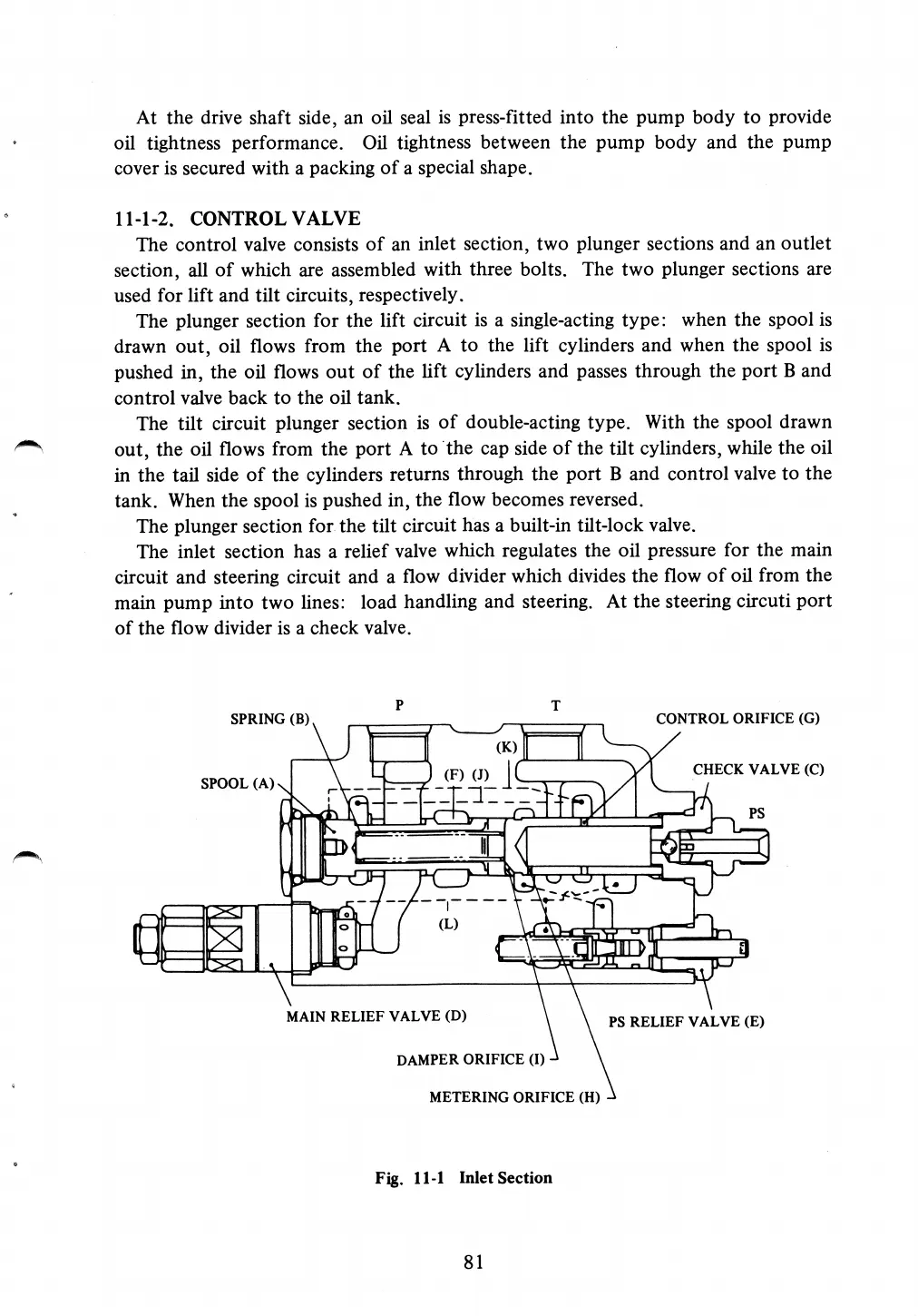 The plunger section for the lift circuit is a single-acting type: