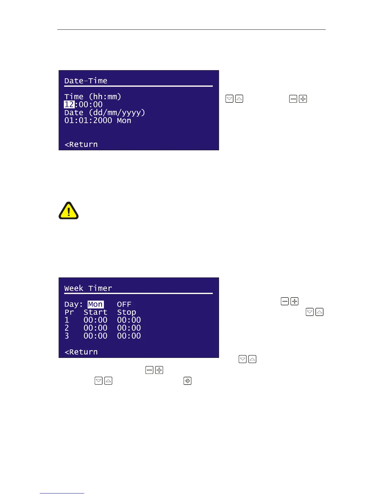 date-time settings after AC mains power loss, replace the backup battery. The backup battery is