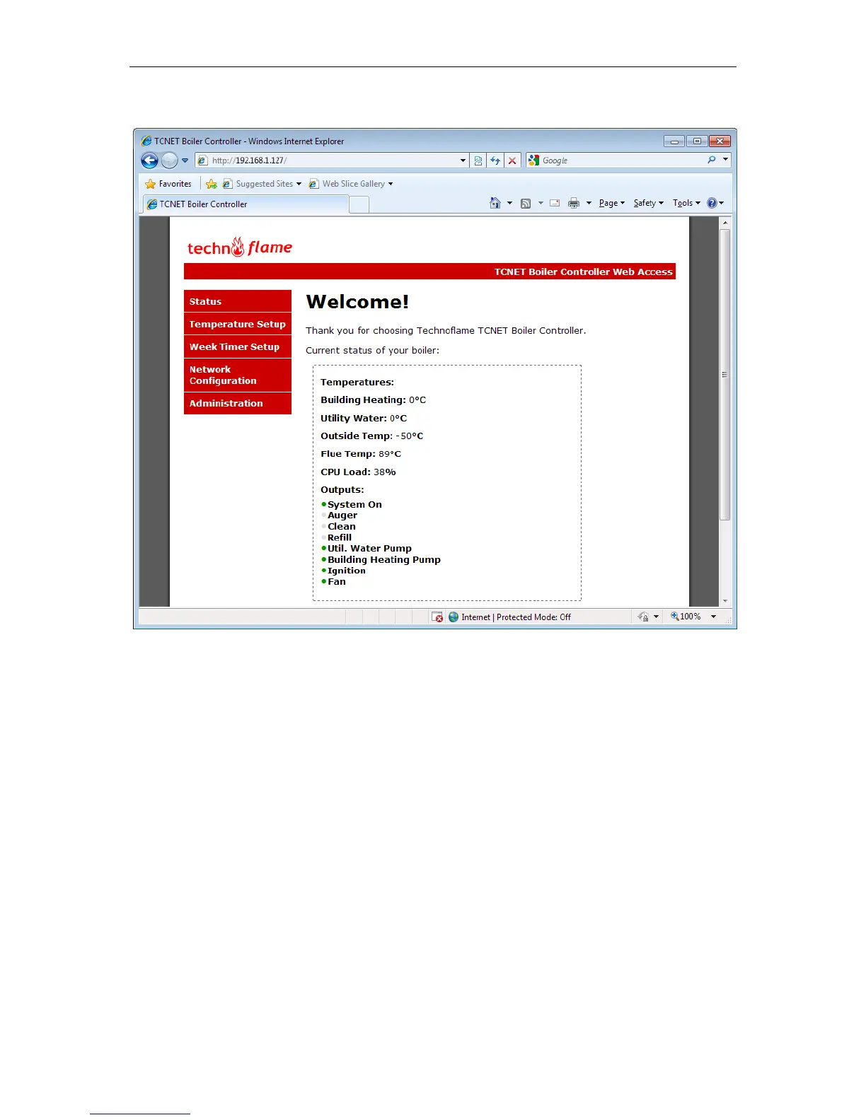All measured temperatures and the device status are shown on this page. CPU load indicates the