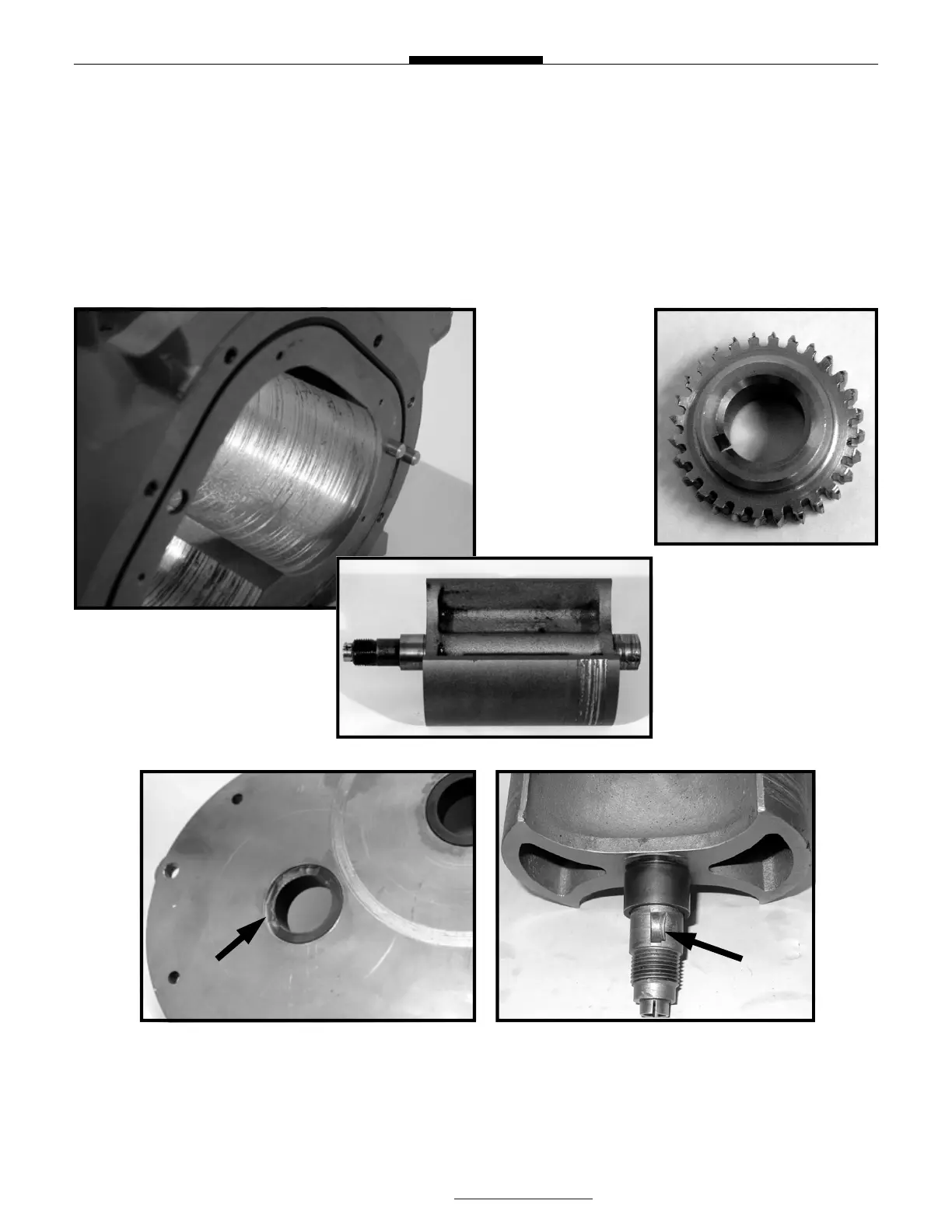 1) Inspect the surfaces of rotors, bearing plates, meter housing and gear teeth for any damage or