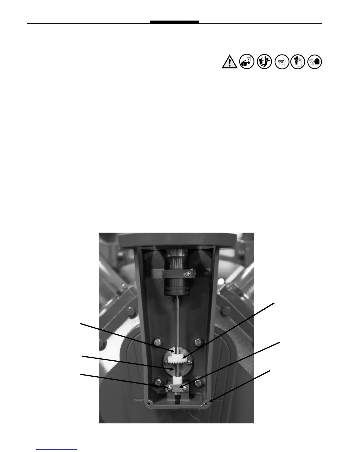 E-Ring (#4) and the face gear (#5). Reinstall the gear on the shaft with the gear teeth facing up. Snap