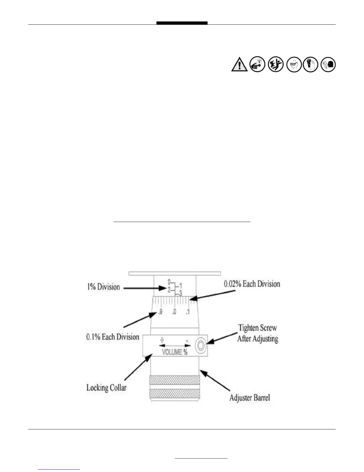 adjuster body will show divisions of 1%, while the adjuster barrel has divisions of 0.02%. For volumes other