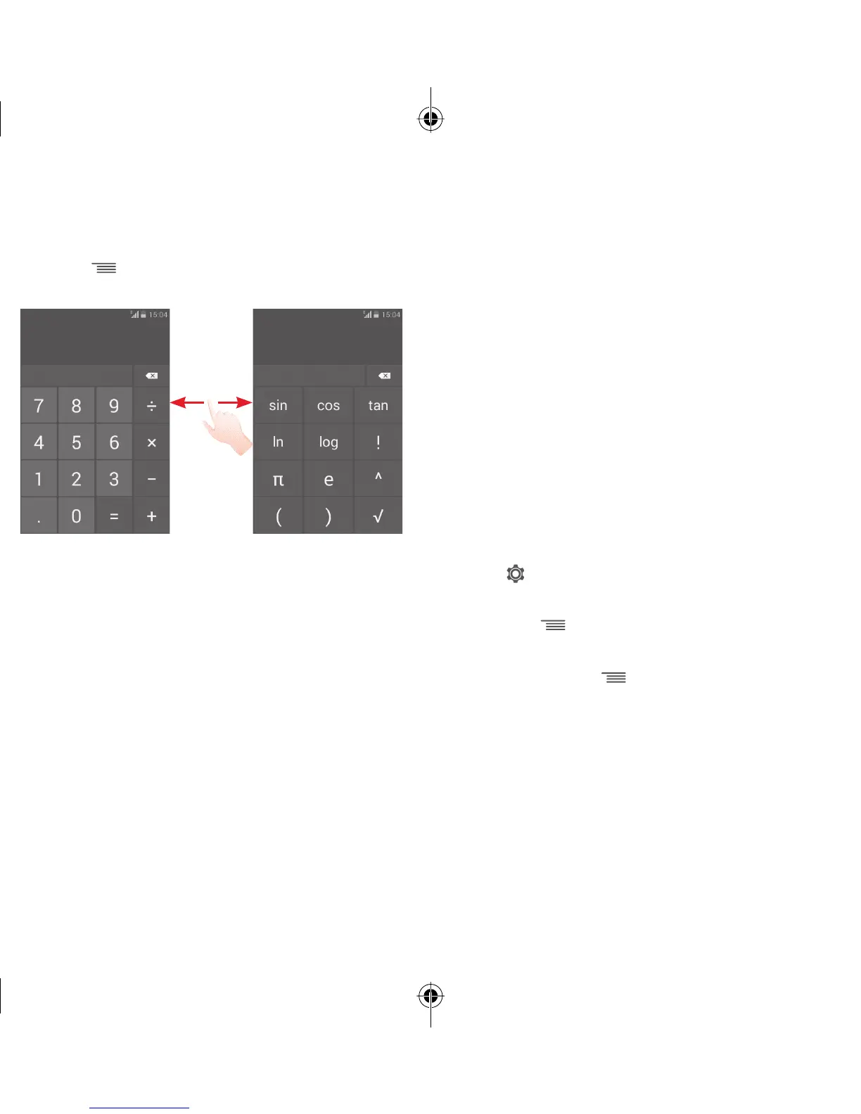 • Touch and drag the basic screen to the left to open the