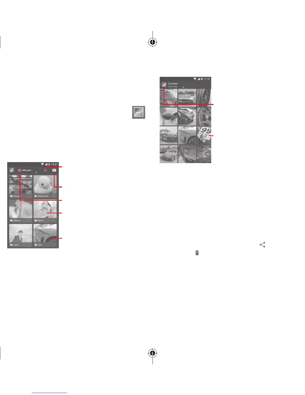 Pictures and videos are displayed by albums in Gallery.