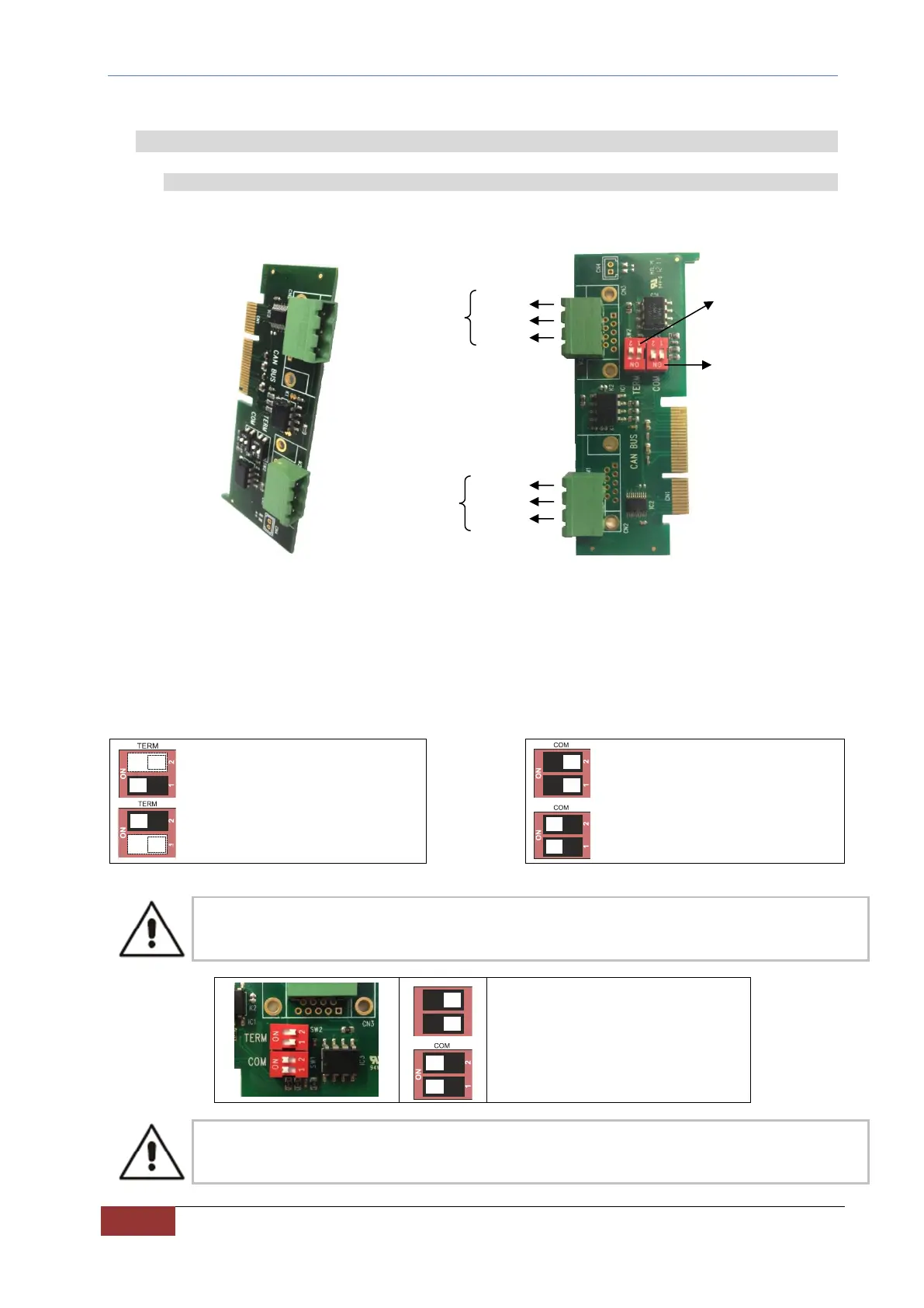 The contacts of the dip switch "TERM" (one for each CAN connector), if set to ON, enable the terminating resistor