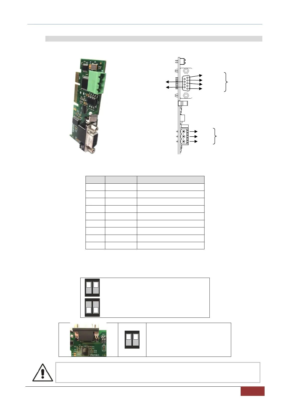 The pin assignment of the optional card for PROFIBUS – CAN BUS communication is given here below.