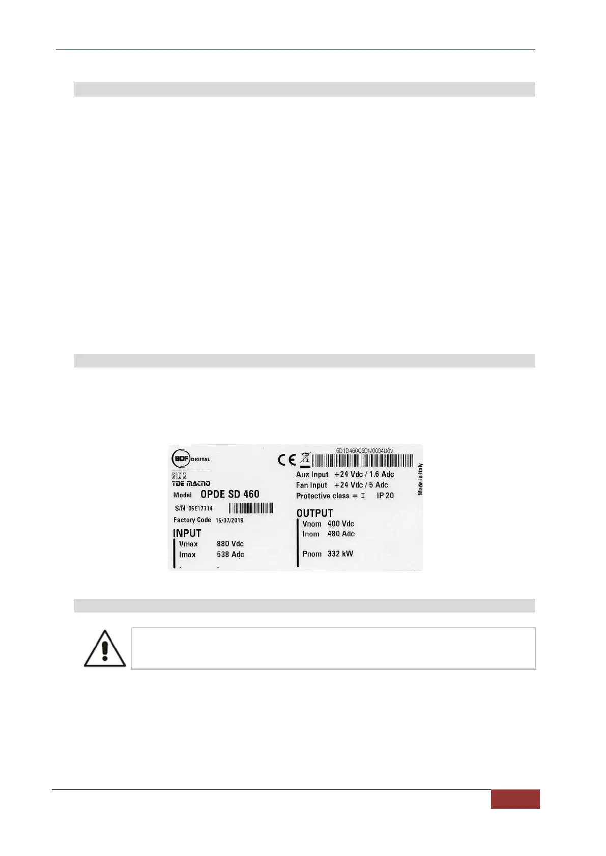 The rating plate consists of a silver polyester adhesive label with black print, having the following dimensions: L= 102