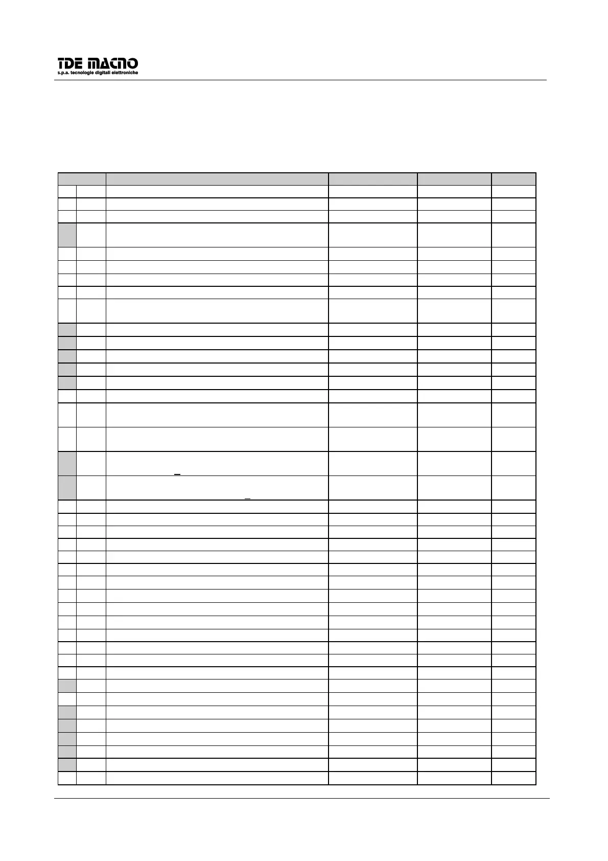 (Note: n = off-line, r = reserved to the customer, t = TDE-reserved)