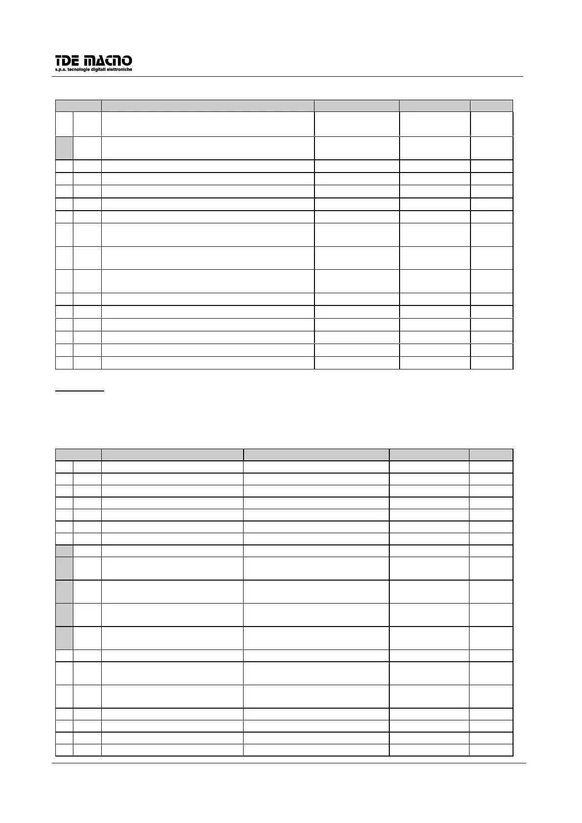 (Note: n = off-line , r = reserved to the customer, t = TDE-reserved)