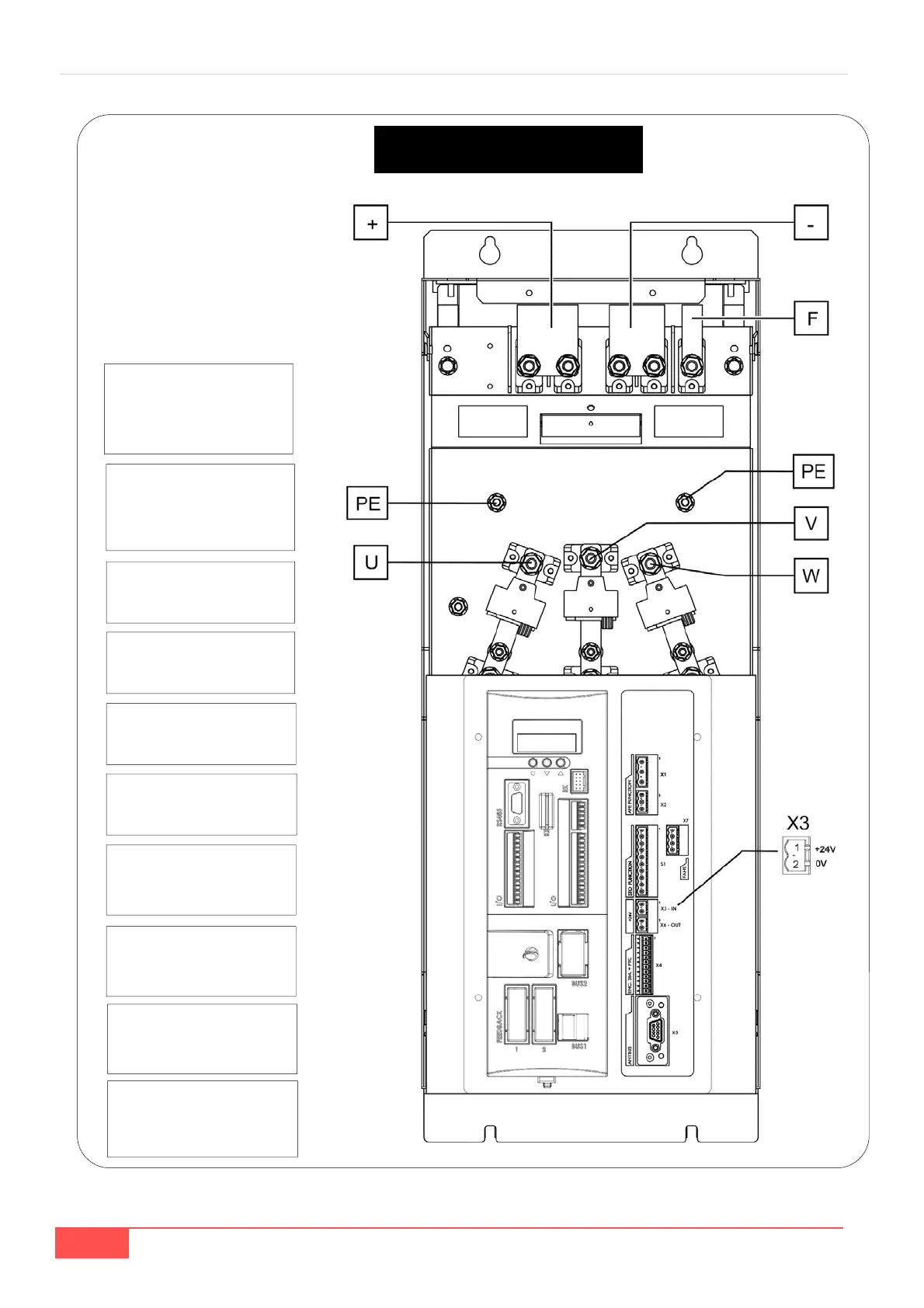 “+” “-”: DC Bus connection