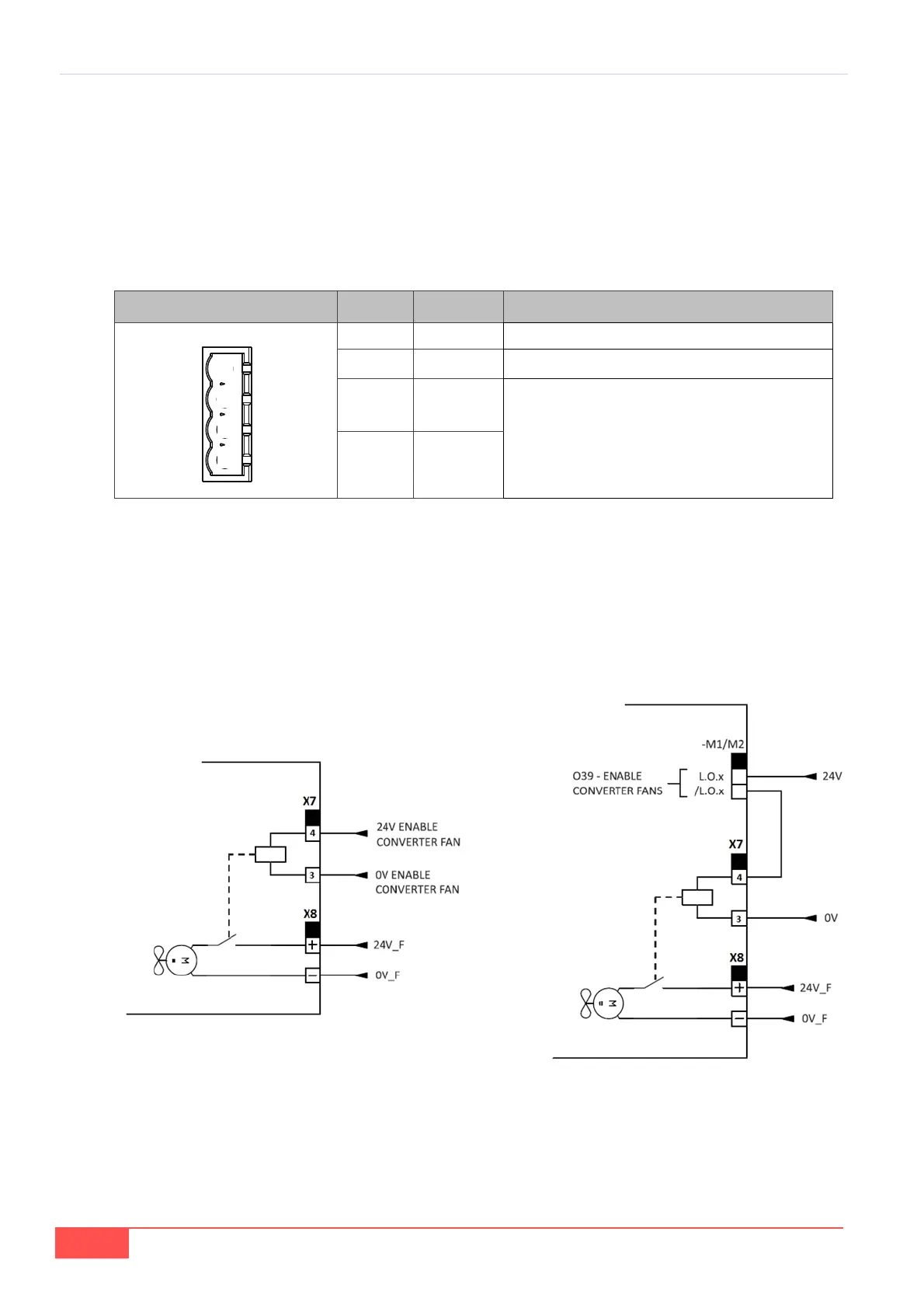 Example of fans power supply connection terminal (X8) and enable fans terminal (X7)