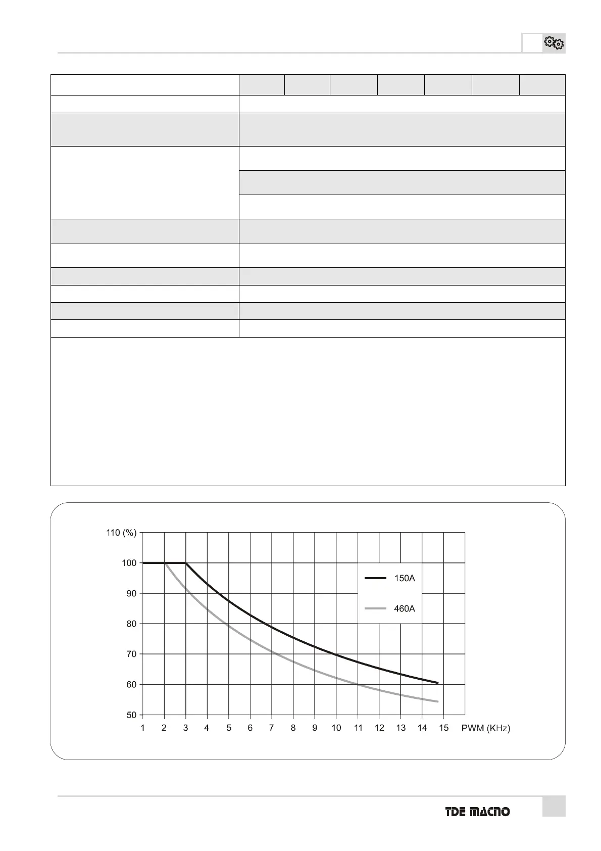 (2) Corrente nominale per uso continuativo a 3kHz PWM. Nella FIG.5 è riportato l’andamento del declassamento automatico in funzione della