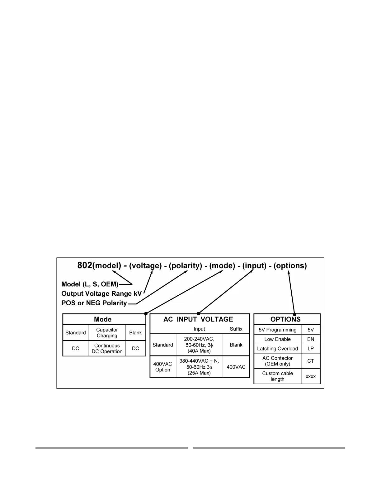 Examples are: 802L-10kV-POS-400VAC and 802S-20kV-POS-DC.