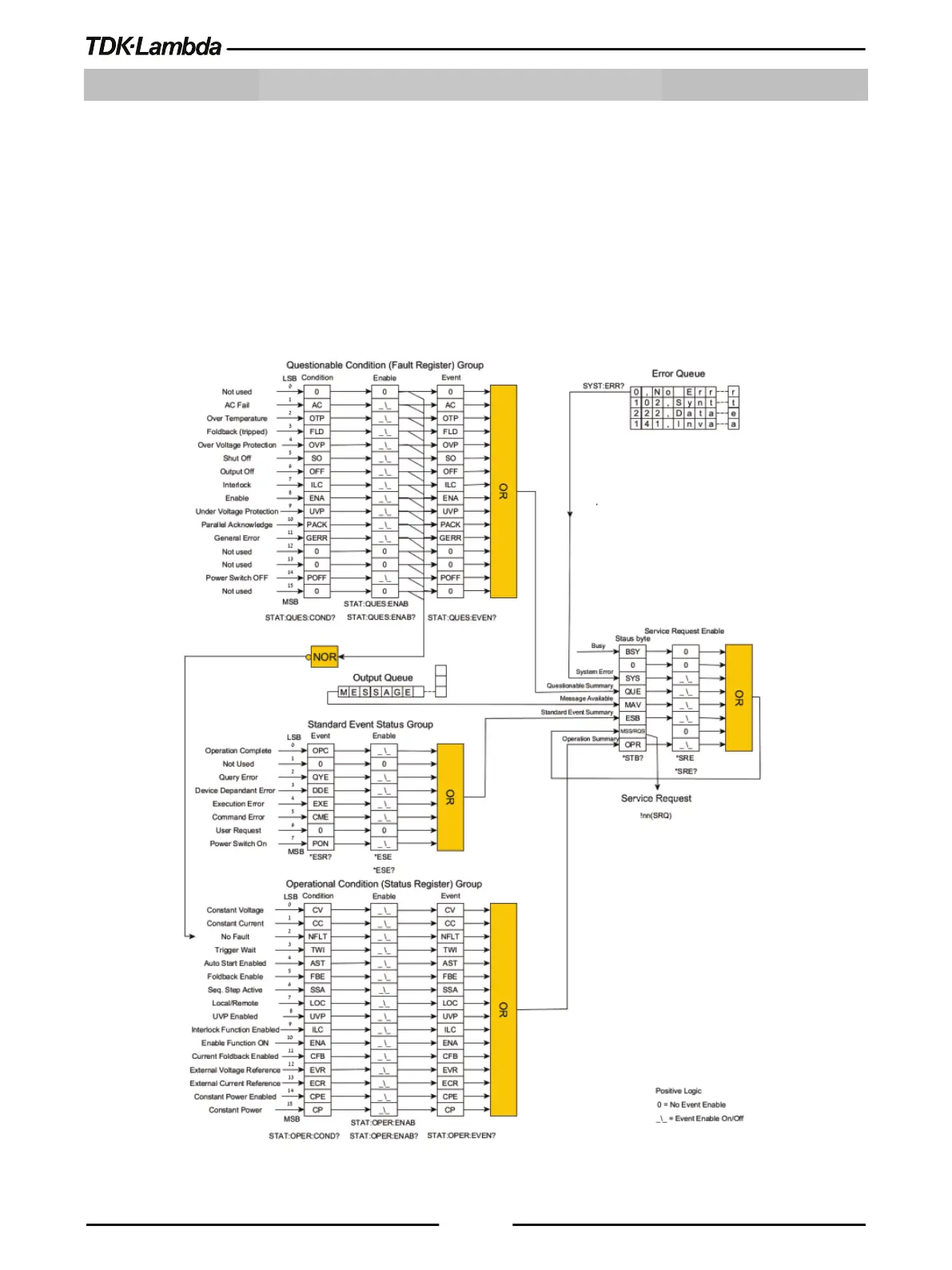 TDK-Lambda G10-500 - Chapter 7: Status, Fault and SRQ Registers; 7.2 SCPI Language Registers; 7.2.1 SCPI Register Tree Diagram
