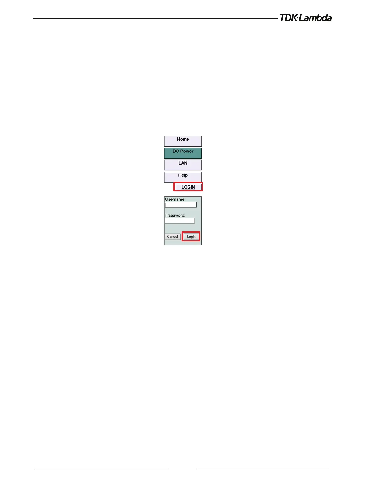 When the DC Power tab or LAN tab is clicked, a login box appears:
