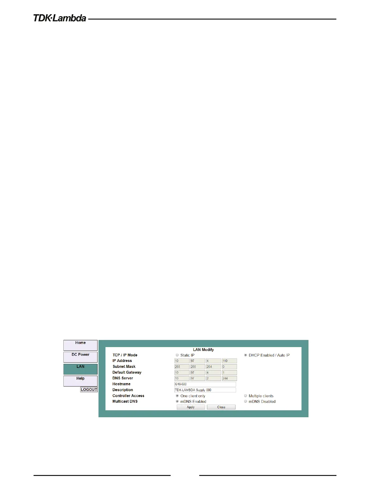 By default, this is “TDK-LAMBDA Supply <Last 3 digits of the Serial Number>”, but it may be