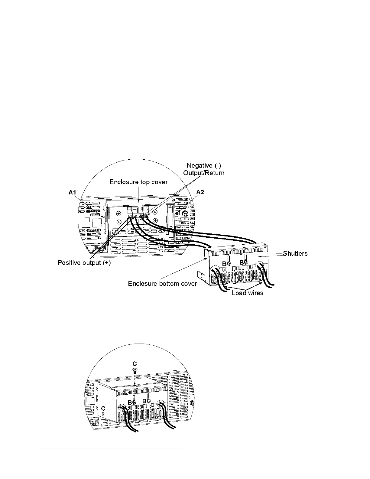 g) Slide down the shutter to secure load wires in place, and tighten screws “B”.