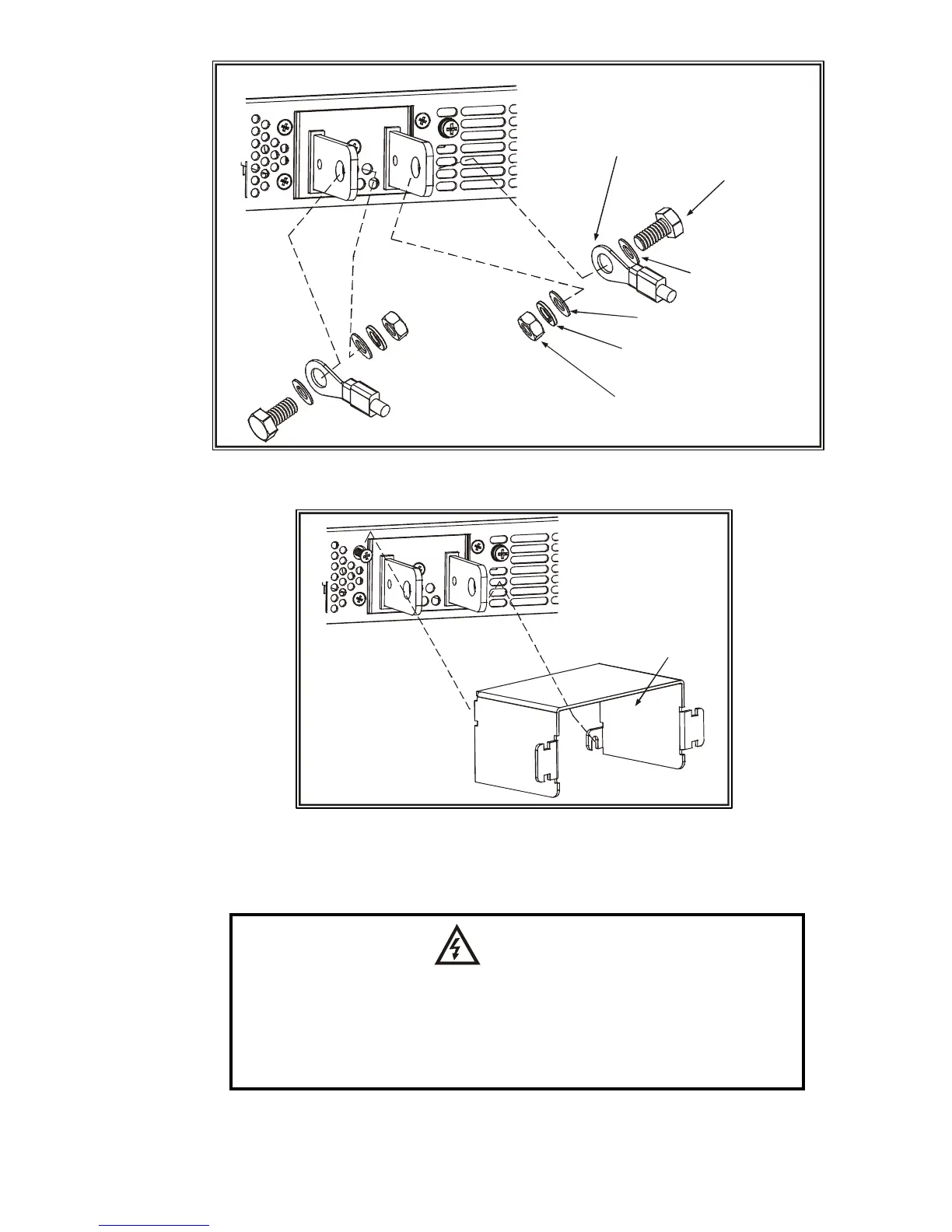 Hazardous voltages exist at the outputs and the load connections. To