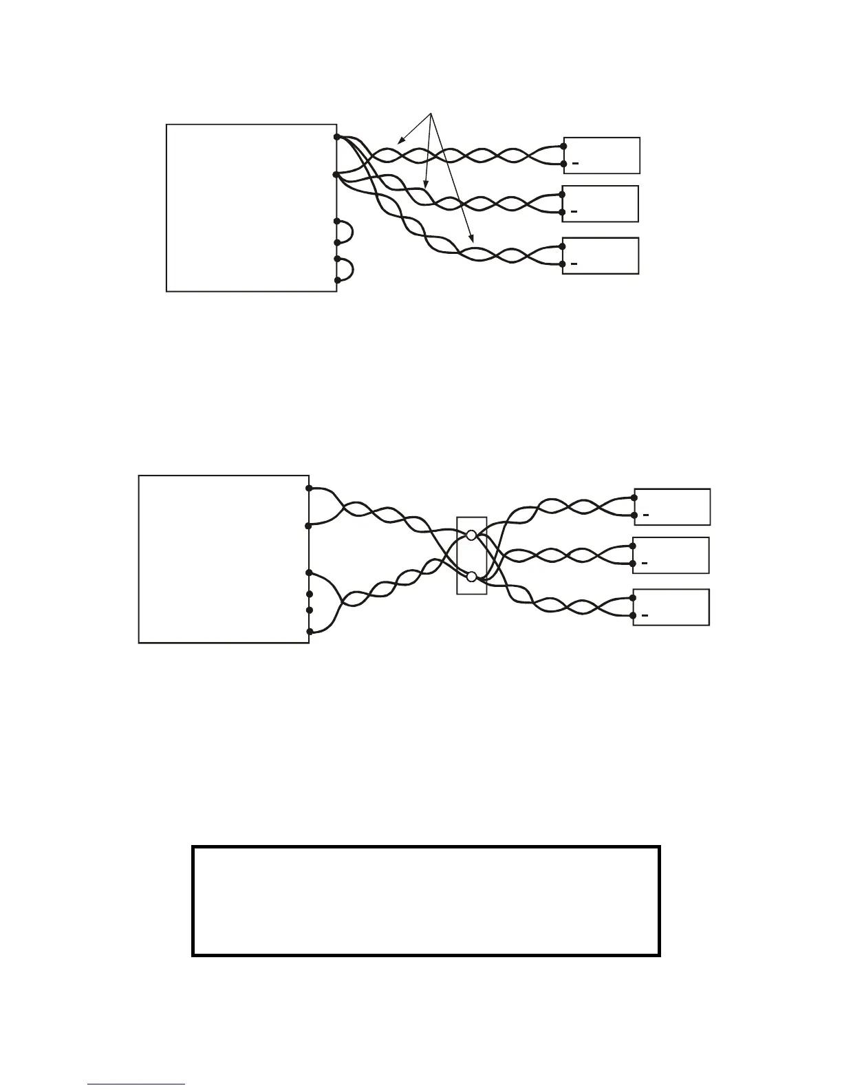 should be connected to the distribution terminals by pair of twisted and/or shielded wires. Each
