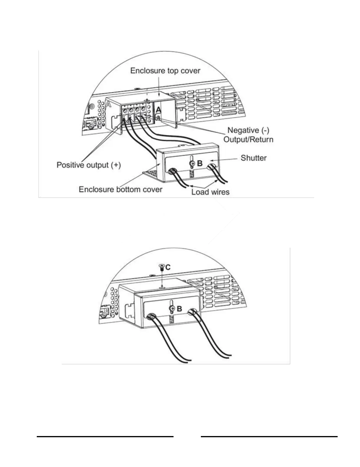 8. Slide down the shutter to secure load wires in place, and tighten the screw marked “B”.