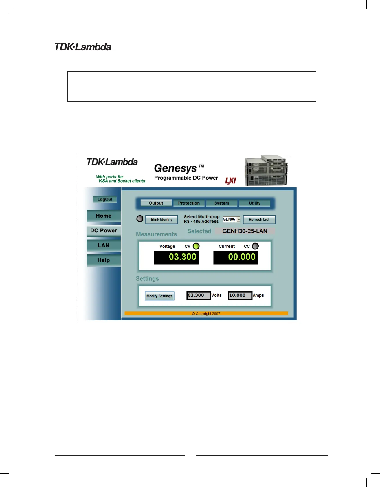 When the “DC Power” tab is selected, the “Output” soft front panel (GUI) loads first.