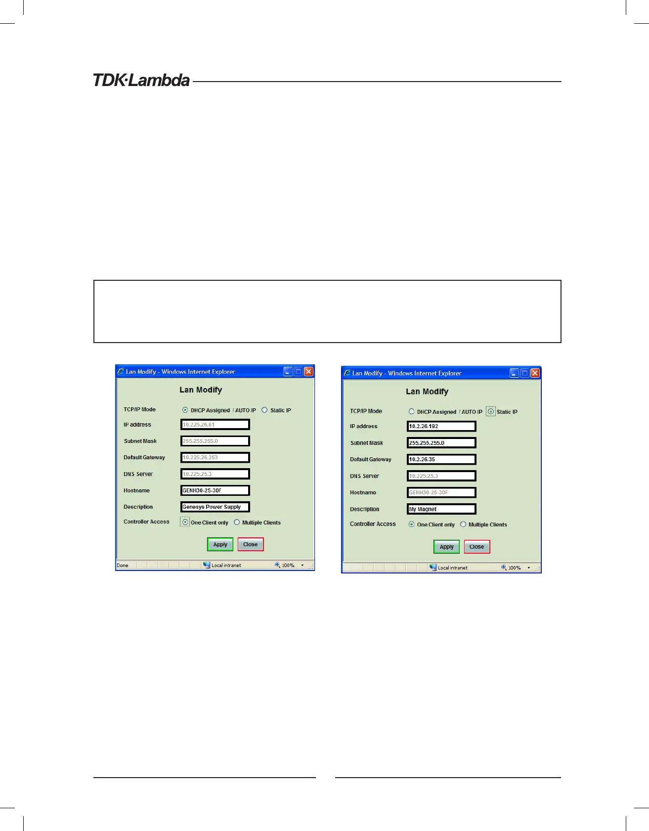 TCP/IP Mode: This selects how the power supply gets it’s network settings. Select either: