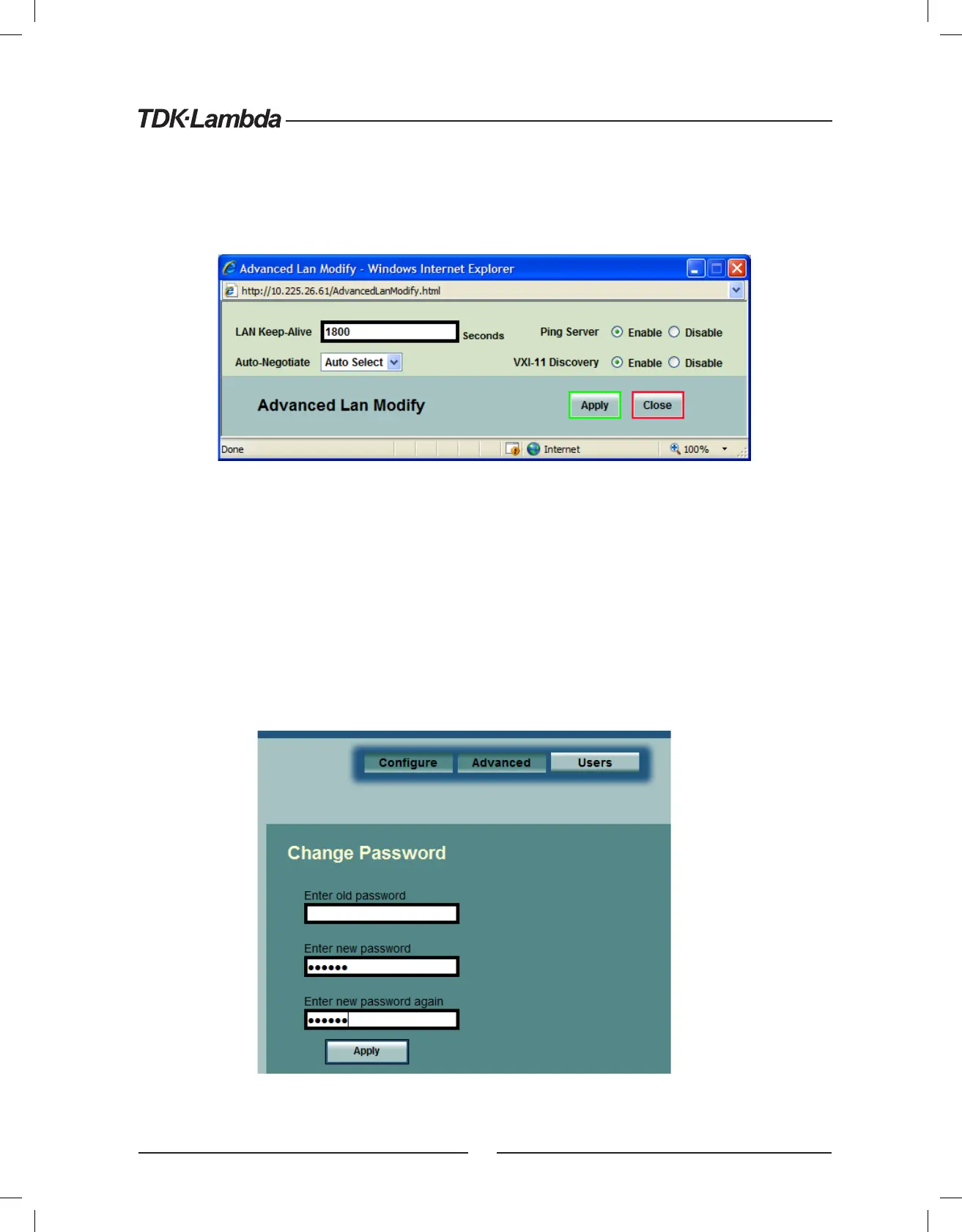 Reset the password: once a password is applied, it may be changed by using this screen, but it can only