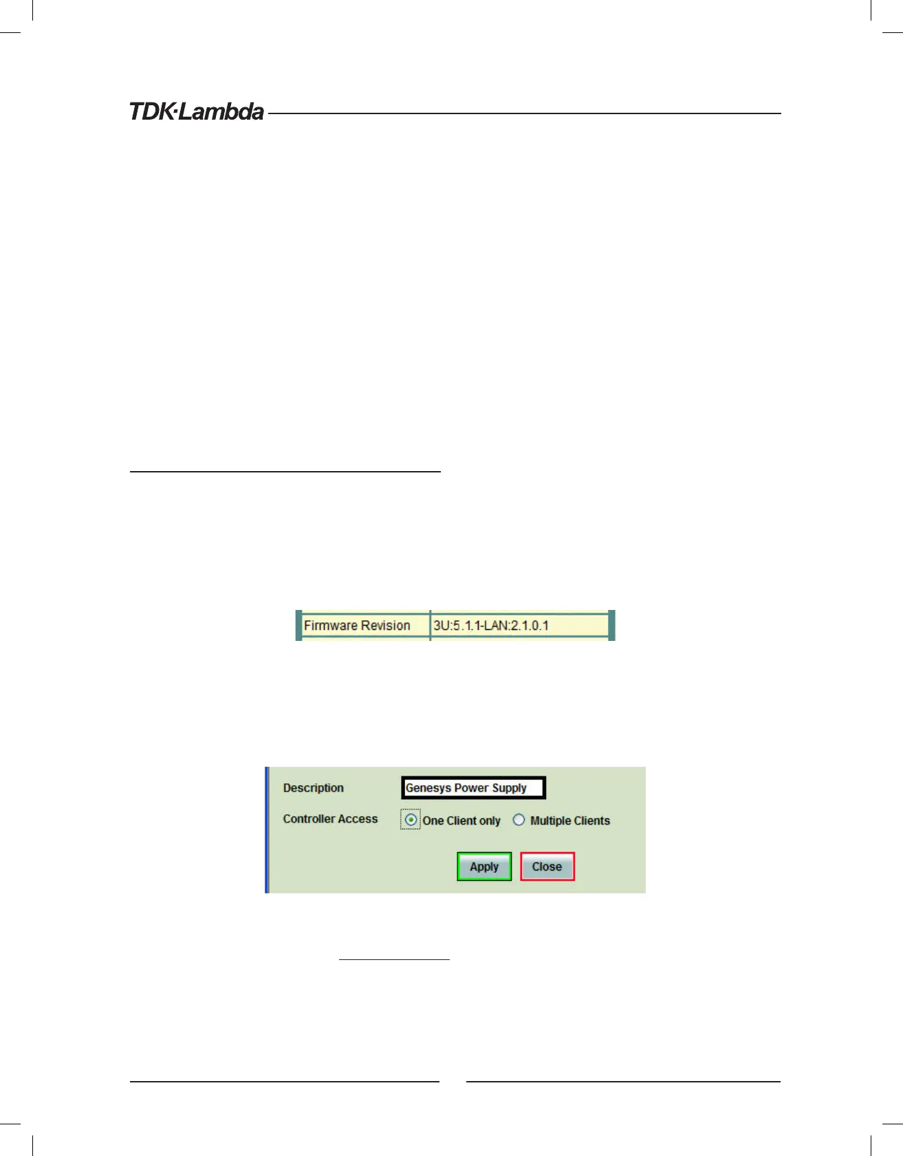 This section applies to Genesys LAN with firmware revision that has “-LAN:2.1” as seen on the “*IDN?”