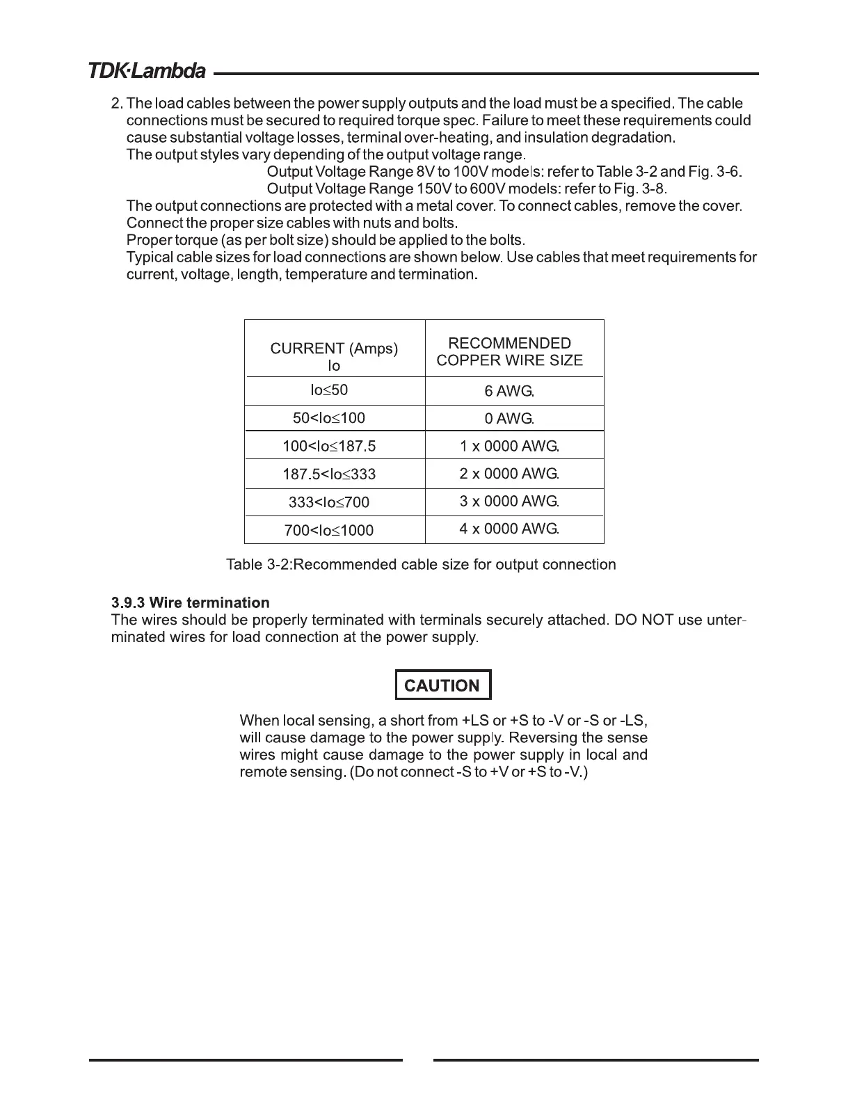 TDK-Lambda GENESYS GEN 5kW Series - 3.9 Connecting the Load (Continued); Wire Termination Best Practices