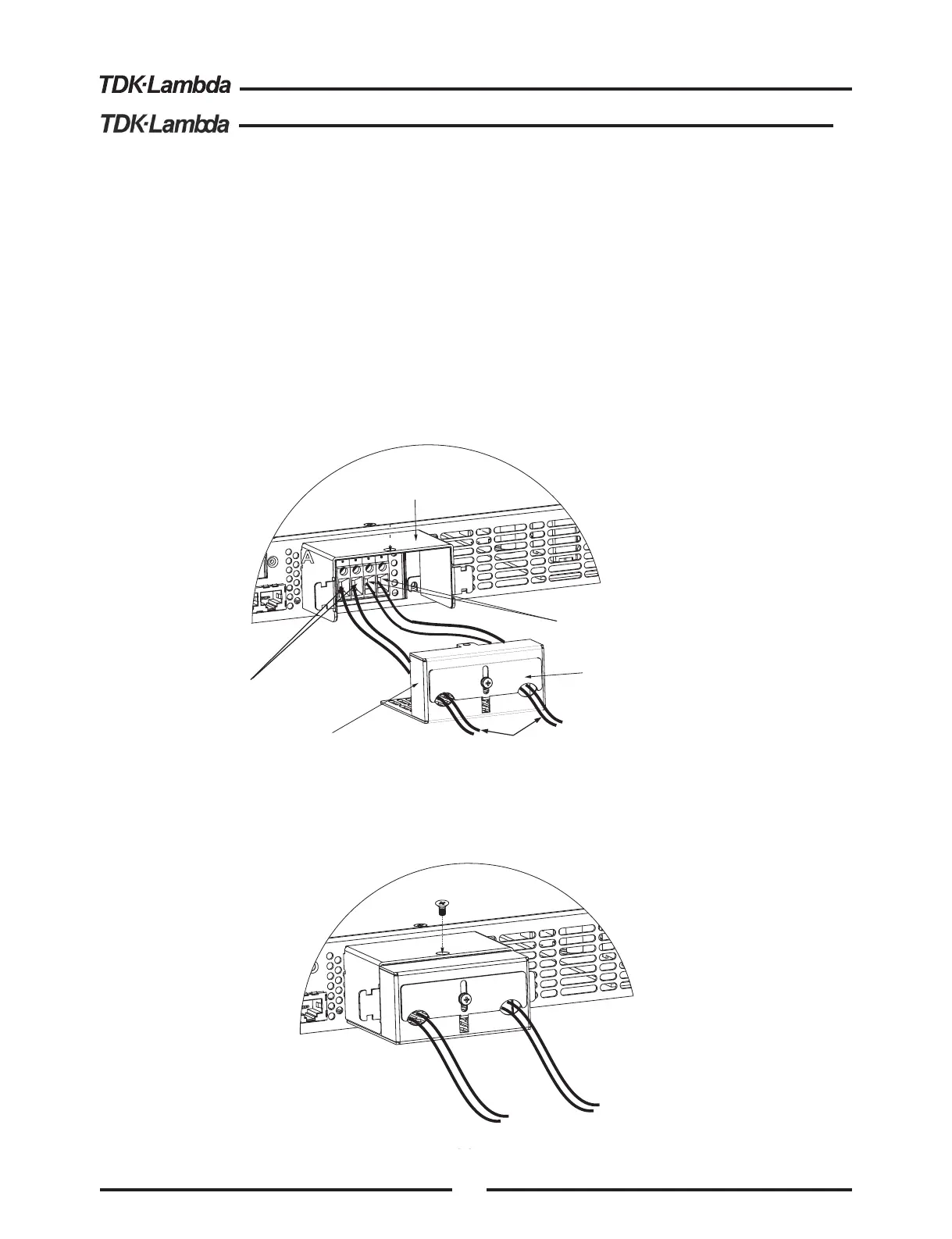 4. Insert stripped wires into enclosure bottom cover opening and then to the terminals,