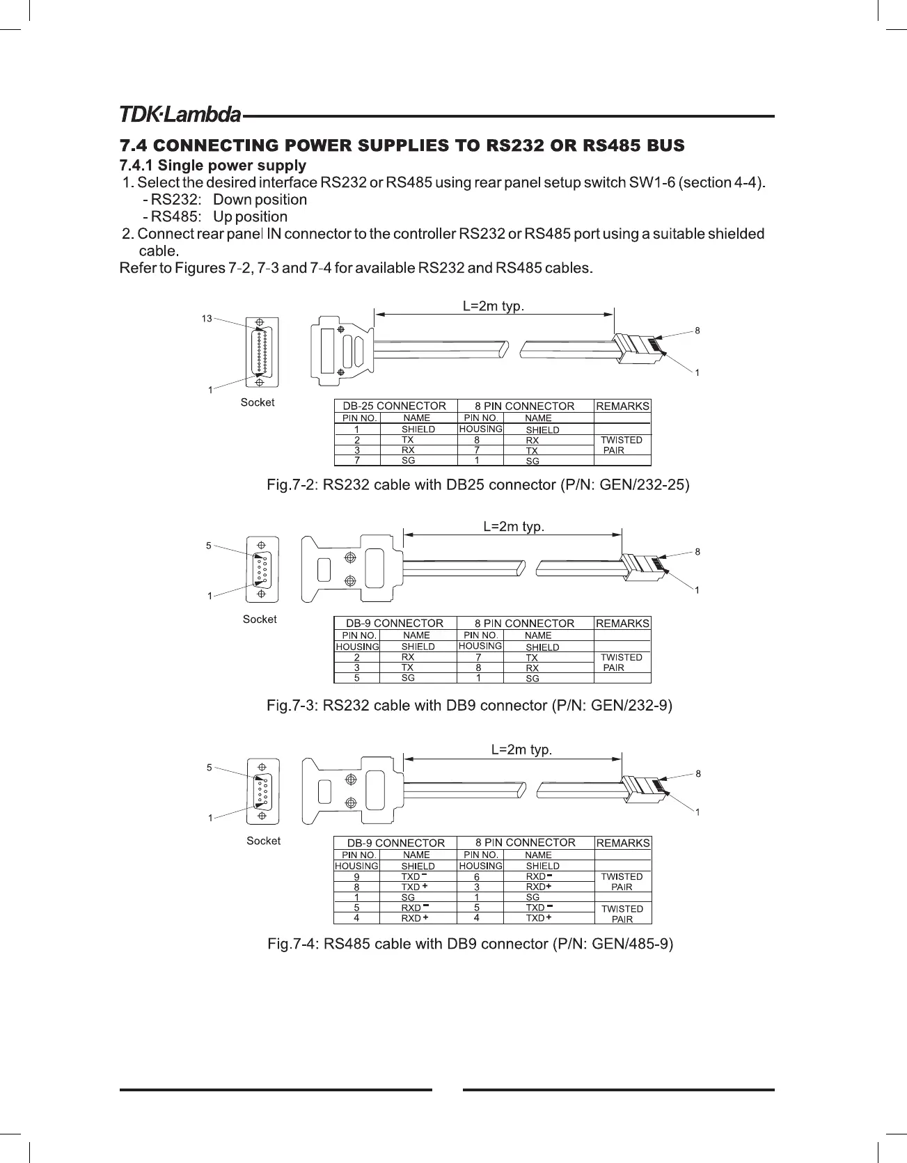 7.4.2 Multi power supply connection to RS232 or RS485 bus
