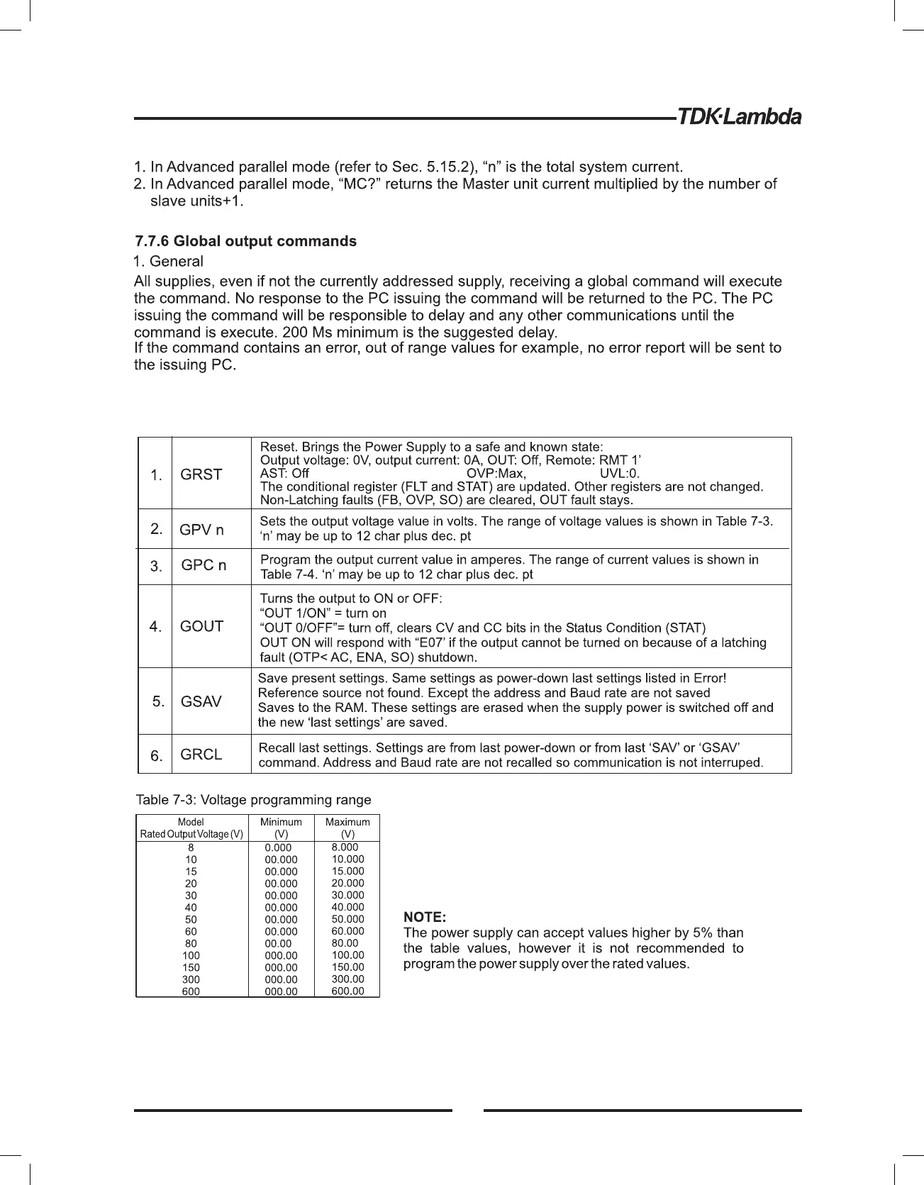 higher. Refer to Table 7-7 for UVL programming range.