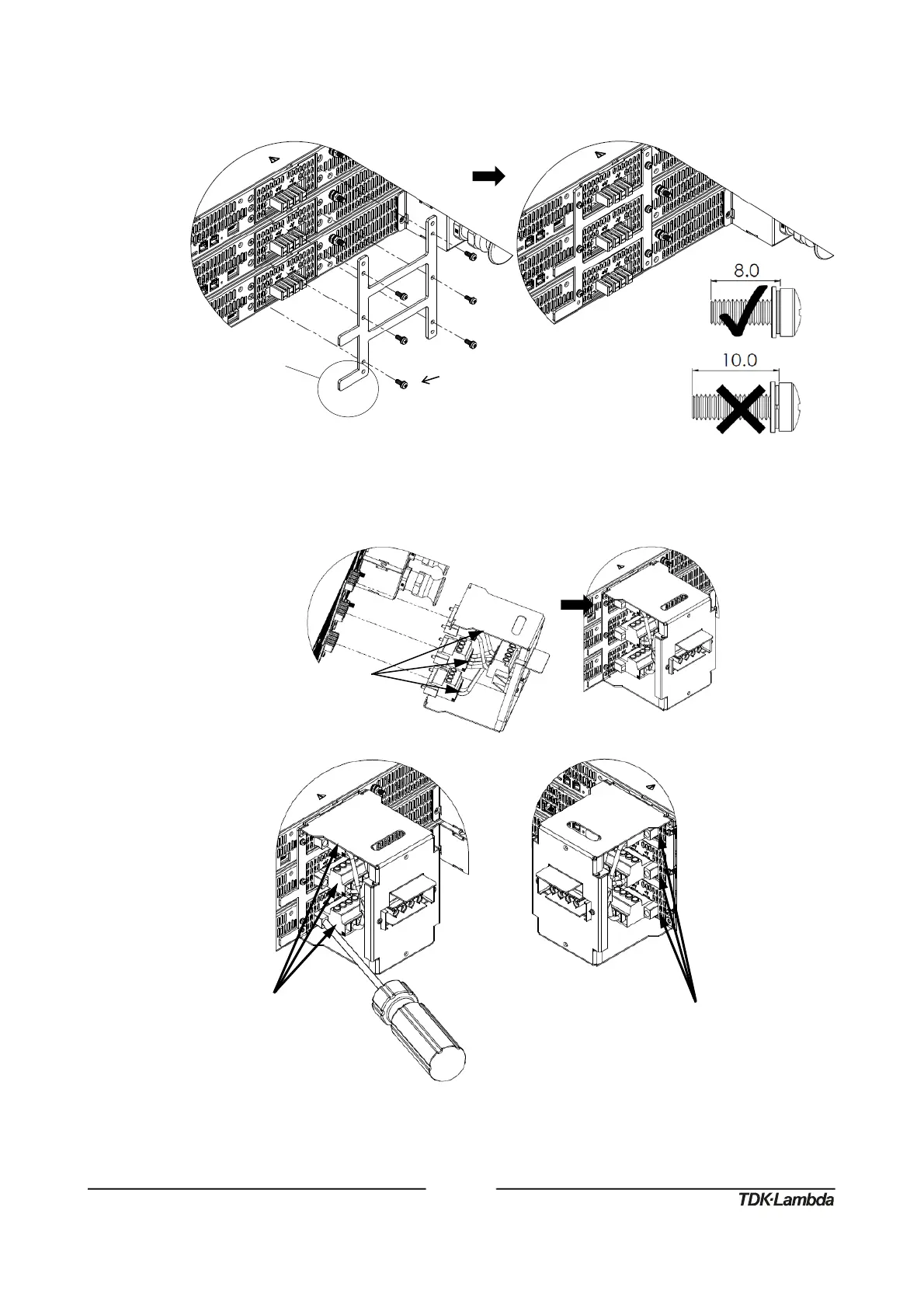 3. Attach fixing bracket to power supply’s back side using six SEMS screws, eight millimeter