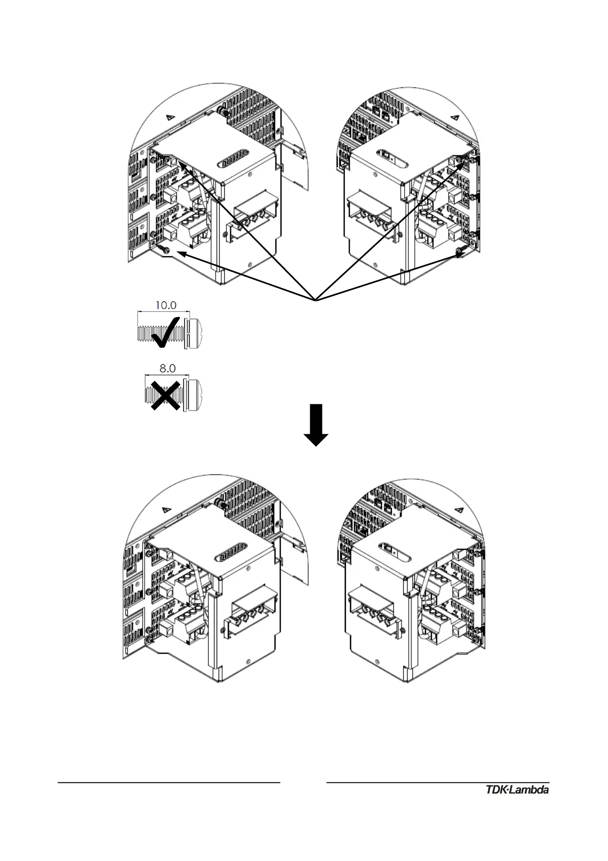 5. Attach output bracket G+15KW to fixing bracket using four SEMS screws, ten millimeter screw