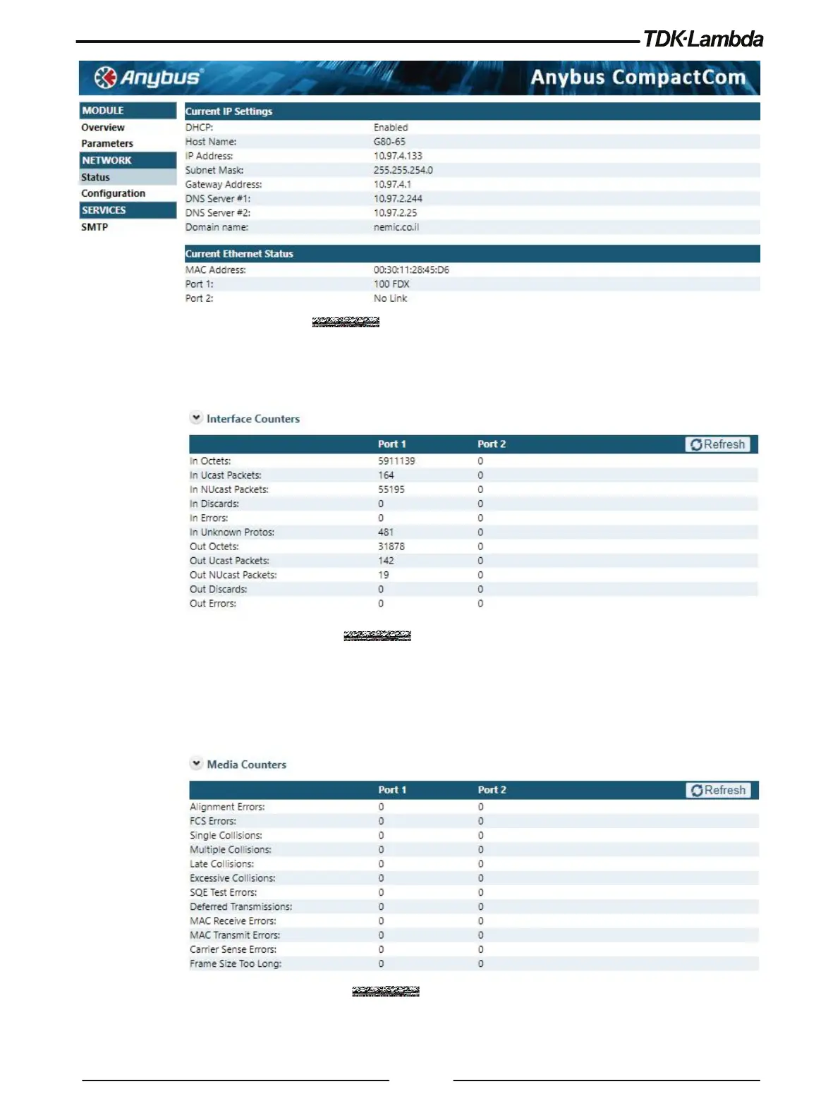 Figure 6–5: Ethernet Settings and Status View
