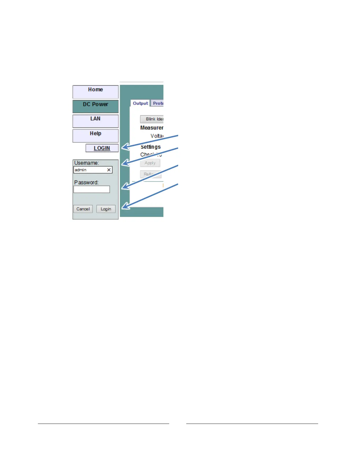 To change power supply output or the LAN settings, a user must first log in.