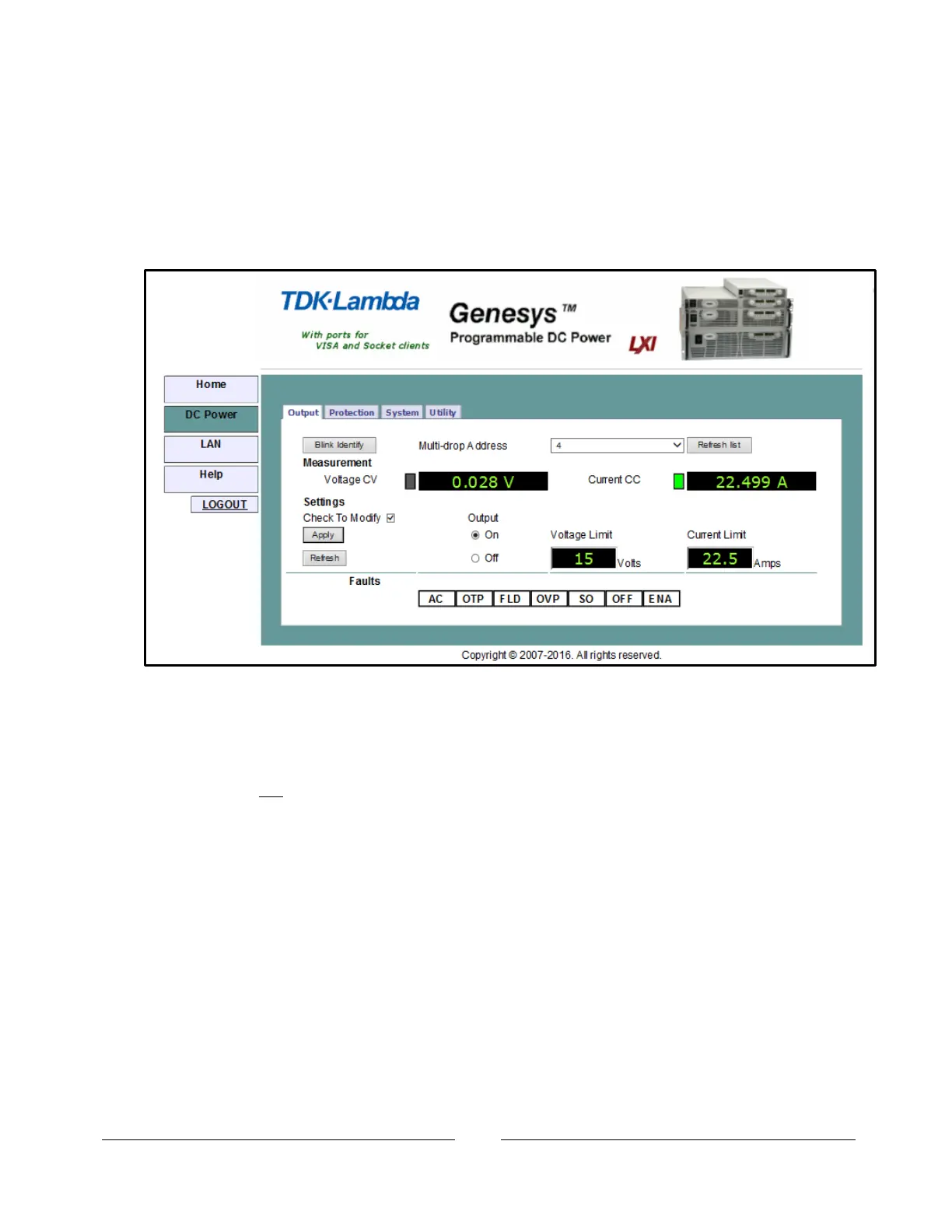 When the “DC Power” tab is clicked, the following web page opens. This page, and its