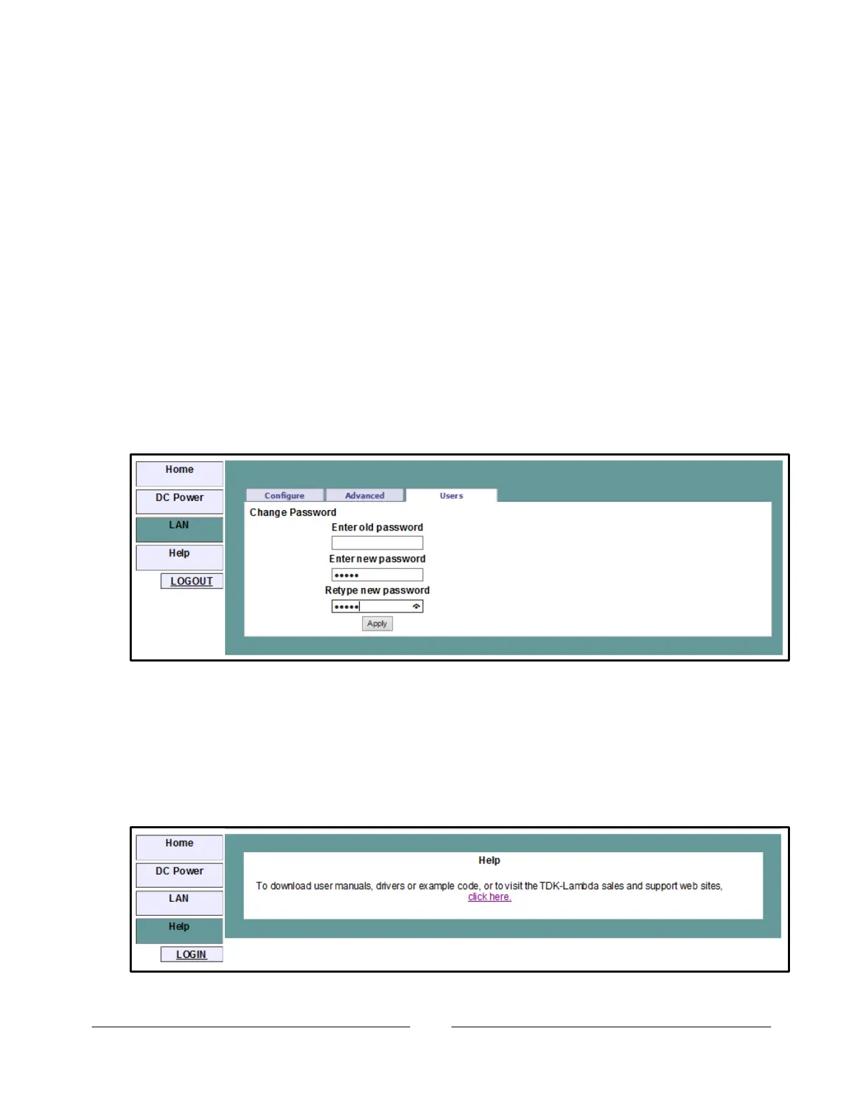 A Help tab is available. This page is a set of Internet links to TDK-Lambda website pages.