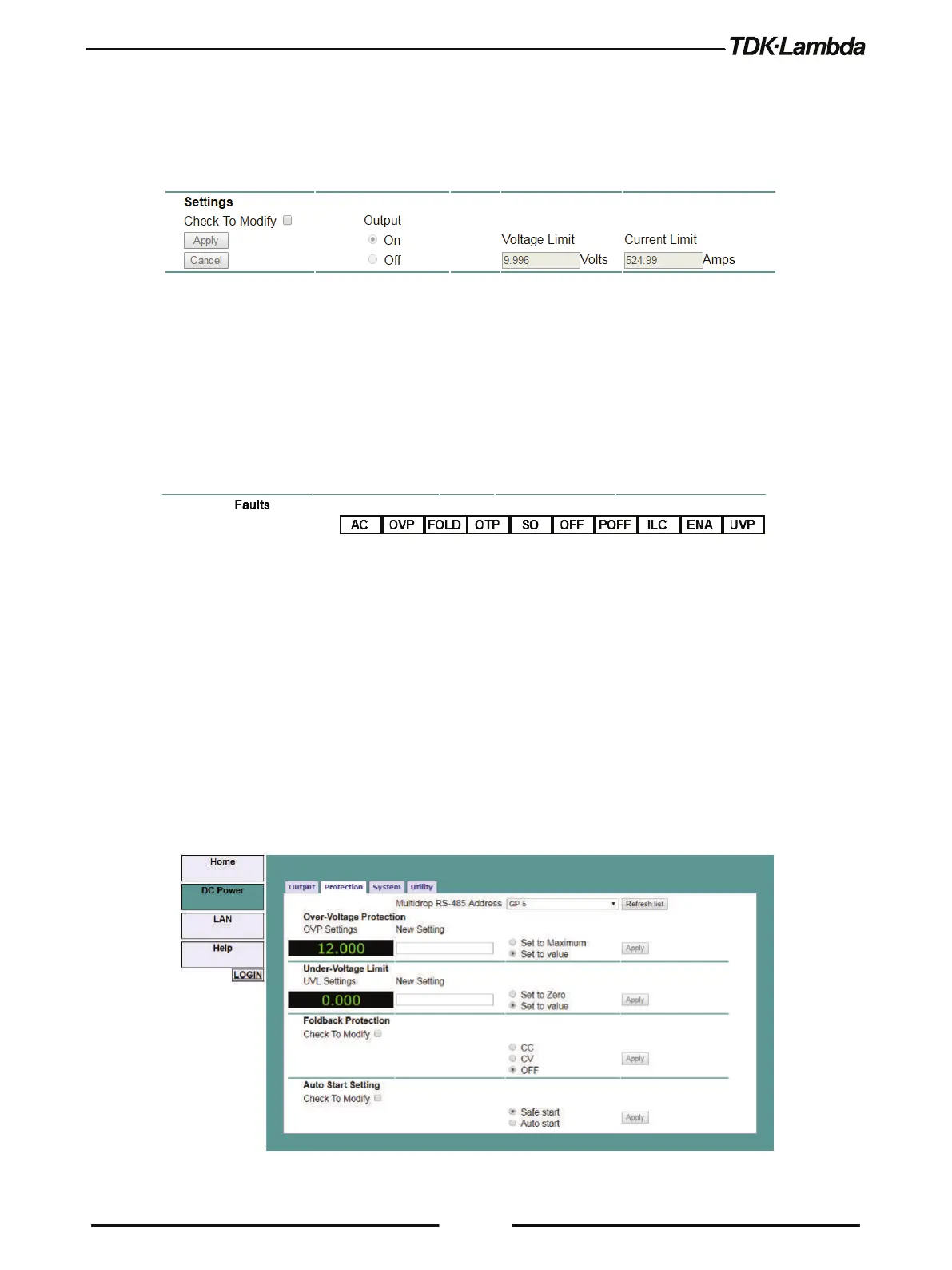 In a multi-drop chain, these settings affect only the supply selected in the RS-485 address list box.
